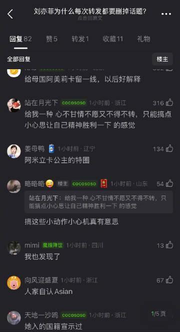 网友好奇:刘亦菲为什么每次转发都要删掉话题?