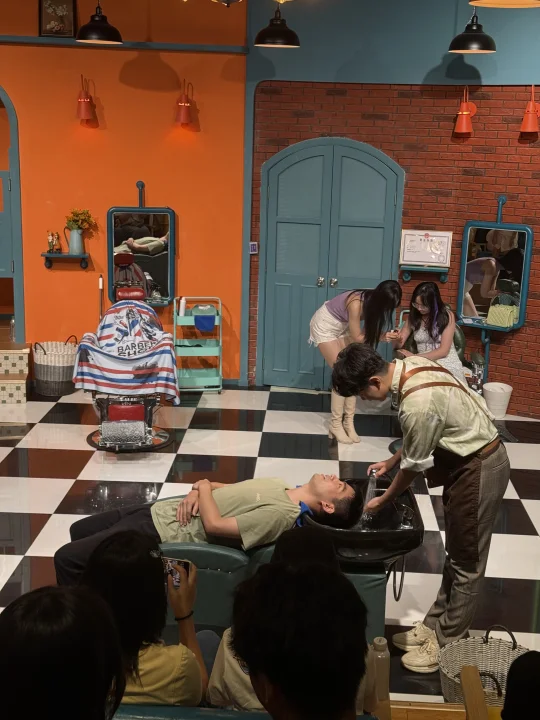 💈周末休息,朋友带我来万象城体验沉浸式的演出开心麻花剧场的“疯狂理发店”。现场氛围很好,在复古的理发店发廊会随机给观众洗头发吹头发和做美甲。特别细节的是店里真的有营业执照💅🏻
