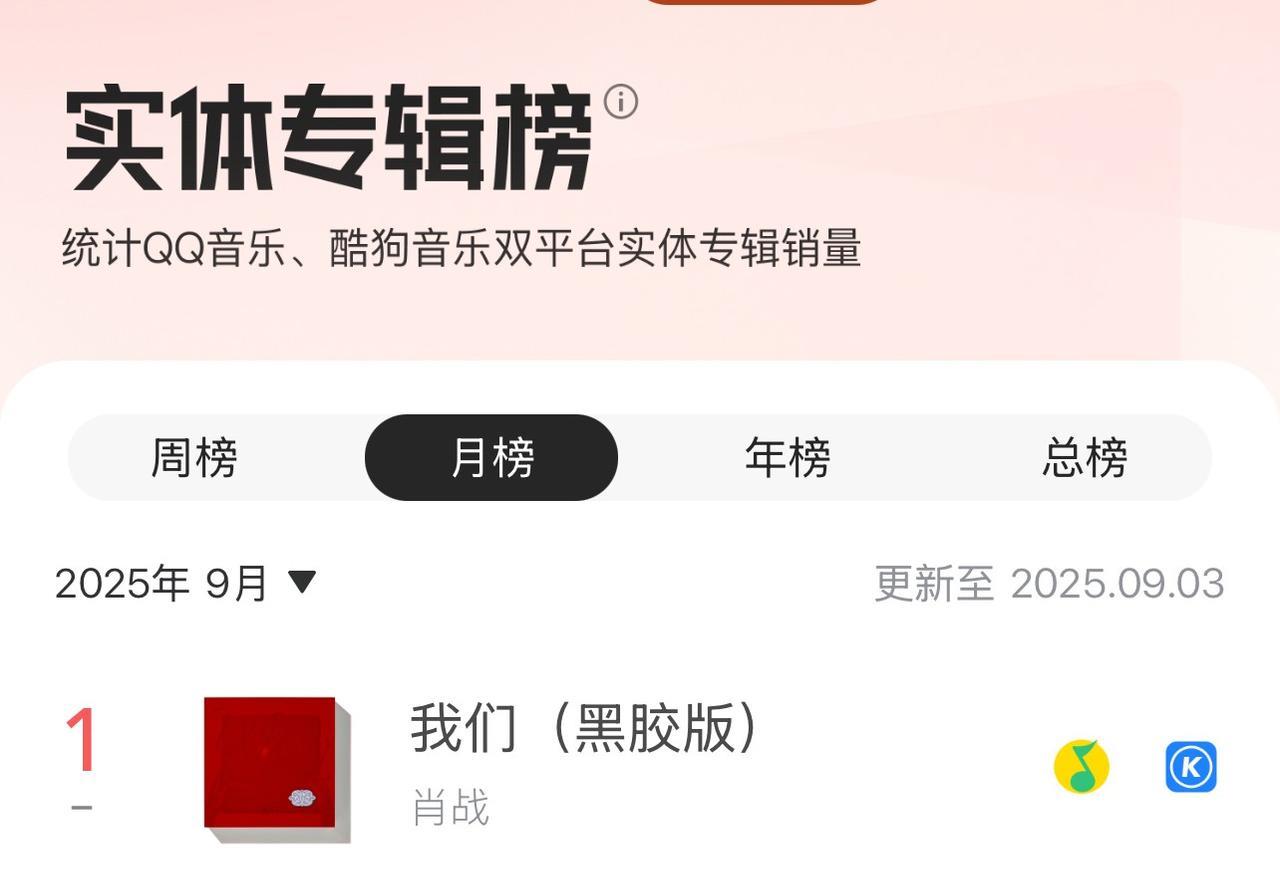 肖战去年发布的音乐实体专辑《我们》,时至今日,稳居腾讯音乐榜总榜第一,月榜第一,