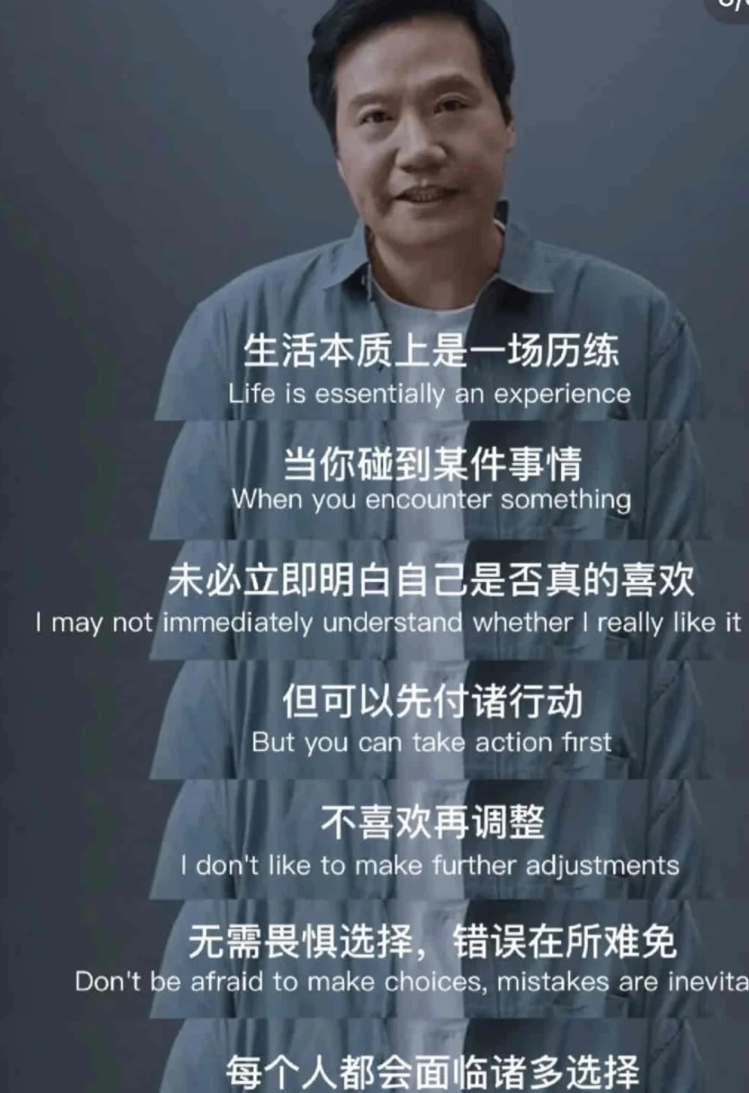 雷军说:“人生不要太多的勉强,做自己喜欢做的事情可能就是好选择。”体验了才会知道喜欢什么,适合做什么,不要害怕尝试。