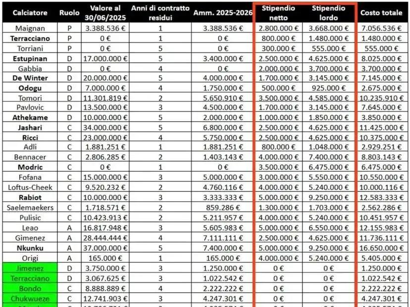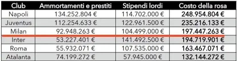 弗拉尼会计厉害了,新赛季米兰全队的税前工资总额1.04亿,排名意甲第5(加上摊销则为意甲第三,排在那不勒斯、尤文之后)。如果米兰能卖出(送走)本纳赛尔、阿德利与奥里吉米兰的工资会重新回到一亿之下,一亿工资就是米兰财政红线,在税费优惠被取消情况下,米兰依然可以很好的控制工资红线,只能说弗拉尼会计牛掰。 阿德利、本纳塞尔、奥里吉3位球员税前工资总计1370万(加上摊销总成本超过了1700万)。但今天消息看送走三人真的很难,奥里吉已经不要脸了,他喵的谈好的解约奥里吉不承认了,现在已经继续躺平去了,本纳赛尔也是同样的问题,与土耳其特拉布宗体育的谈判停滞了,之前说已经达成一致,现在同样反悔了,说的是不愿意加盟土耳其俱乐部,本纳赛尔现在也去躺平了,阿德利与利雅得青年人谈判还在继续,谈了两天了,从时间看也不是很乐观。 \u0000 关于拉比奥特,莫雷托很笃定的说拉比奥特在米兰的薪水为350万欧元,所以这个里面的内容还是有出入的,但大概就是这样,不会有特别大的出入。