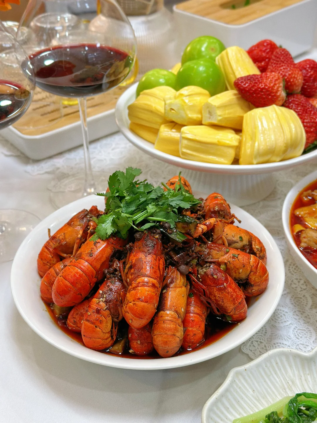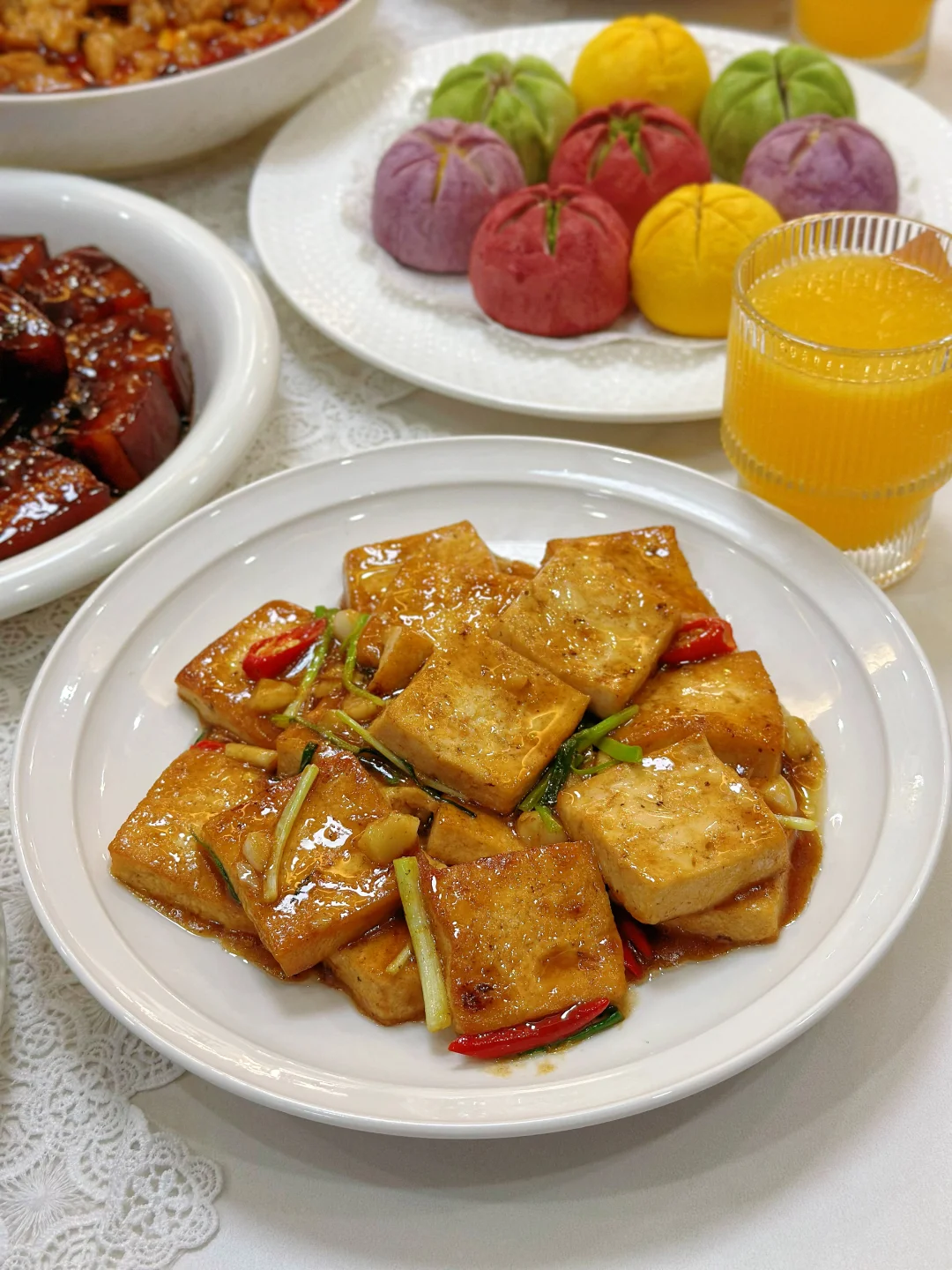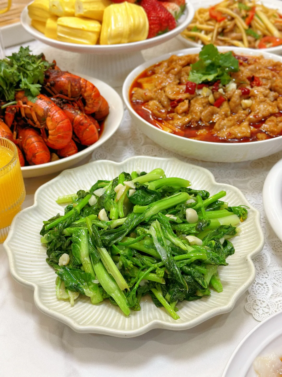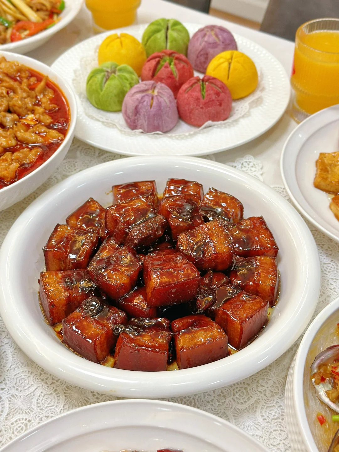 春光烂漫,邀请亲戚来家里吃饭,美食满桌,一起共赴一场春天的约会吧! 菜单分享 红烧肉🥩 清炒菜苔🥬 水煮肉片🥩 家常豆腐 香辣小龙虾🦞 茭白炒肉丝 葱油鱼片🐟 蒜蓉粉丝鲍鱼 南宋胡记荷花酥 水果拼盘🍓 春日的美好时光,和家人相聚在一起吃吃喝喝,这么美好的时光当然要有精致的点心作陪啦——南宋胡记荷花酥! 因为家里长辈都爱荷花,隔三差五爸妈就会买点荷花形状的糕点,这次我也给他们准备了好吃的荷花酥,想着爸妈肯定会很喜欢,每个糕点就好像初绽的荷花花瓣,精致得让人移不开眼。一端上桌瞬间就吸引了家人的目光。轻轻一咬,外皮酥脆掉渣,内馅软糯香甜奶香味很足!而且选用的是新西兰黄油、蓝莓颗粒、云南重瓣玫瑰等优质食材入馅,口味丰富得很,每一口都能尝到江南的细腻风情哦~家人吃了都是赞不绝口! 在杭州,过年过节时,荷花酥更是送礼的热门选择呢,走亲访友时手里提上一盒荷花酥,不仅是满满的心意,又彰显着杭州的特色。平时宅家的下午茶,来上一块配茶,都再惬意不过。礼盒上绘制的荷花与锦鲤纹样,南宋韵味满满,送朋友也超有面儿!这不又准备再买两盒,等下个月踏青野餐时带上它,可是一道拍照超上镜的美食道具呢!
