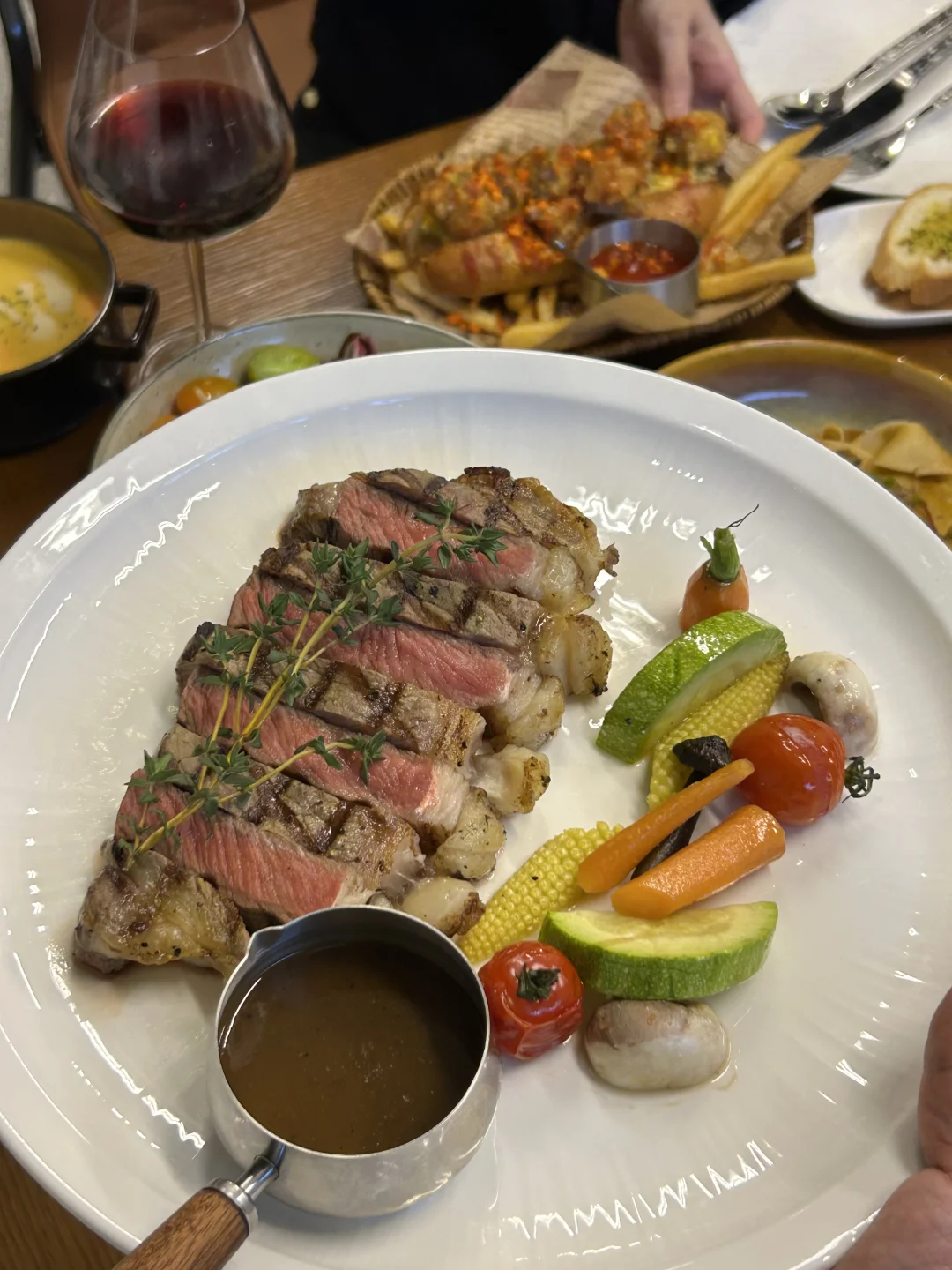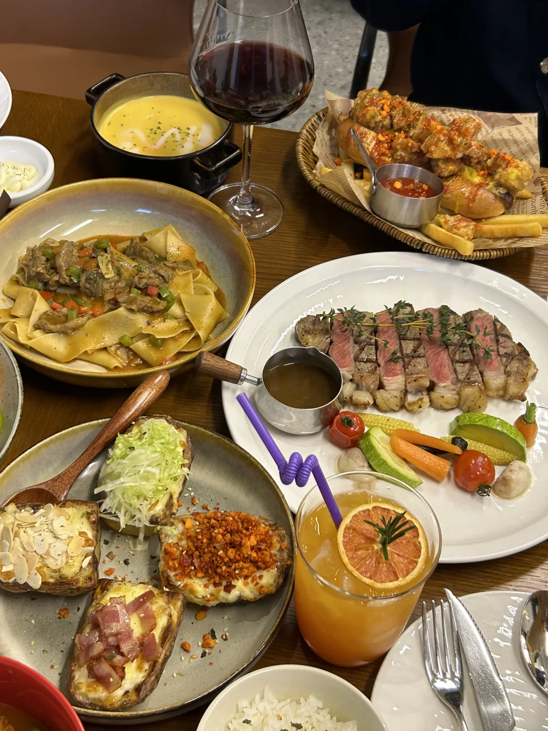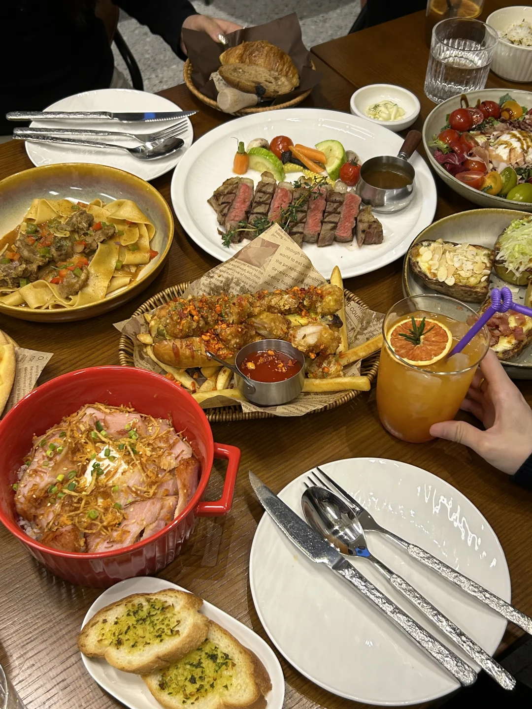发现一家氛围感满满 也很亲民的宝藏西餐厅🍴 楼梯的设计很有艺术气息 优雅的氛围也太好出片了 原切牛排🥩可以根据各人需求现切重量 现切现煎口感真的不错 搭配🍷一起很绝 其他餐品和饮品也都不错 颜值和味道都挺好的
