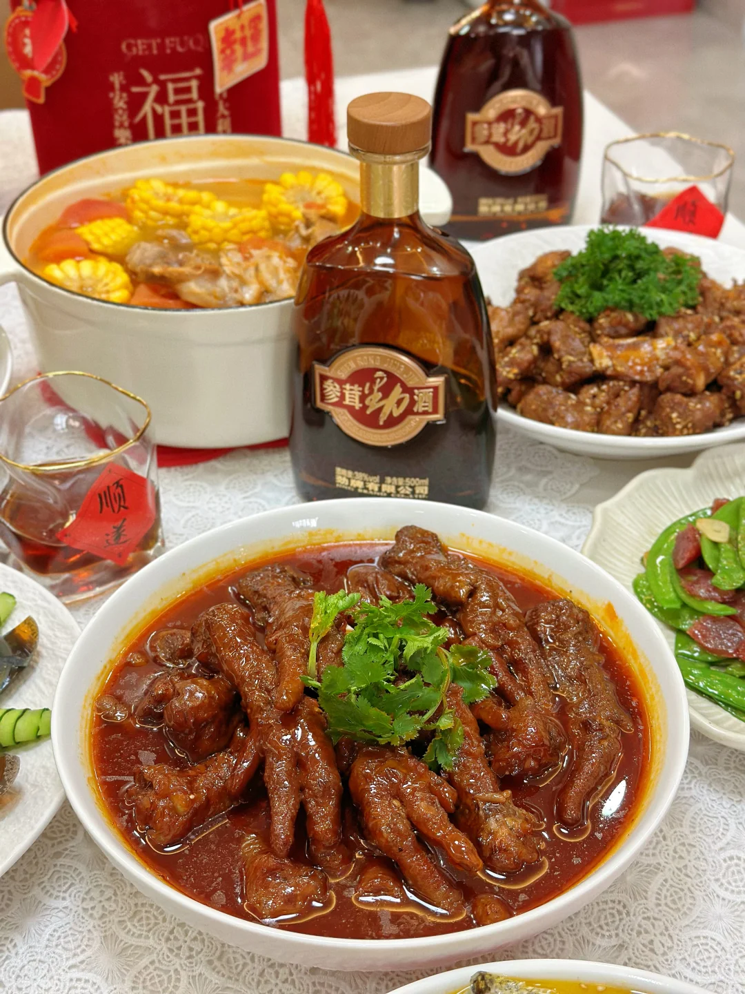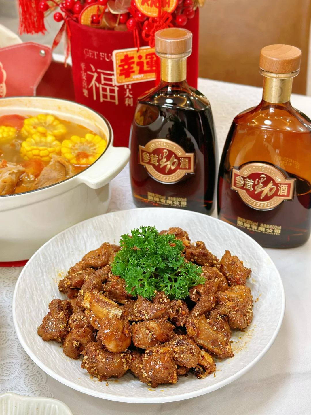 小时候,父母总把最好的留给我们,那碗里的肉、新年的新衣,藏着他们满满的爱。如今,岁月染白了他们的鬓角,是时候该我们孝敬父母啦!这不,今年我给爸妈准备了这参茸劲酒,搭配上我精心准备的饭菜那是再合适不过啦~这参茸劲酒里不仅有人参、鹿茸,还有其它七味精选原料。对于上了年纪的长辈身体非常有益处,不仅可以改善气色,还能养足精气神!很适合新年家宴时和爸妈一起喝!