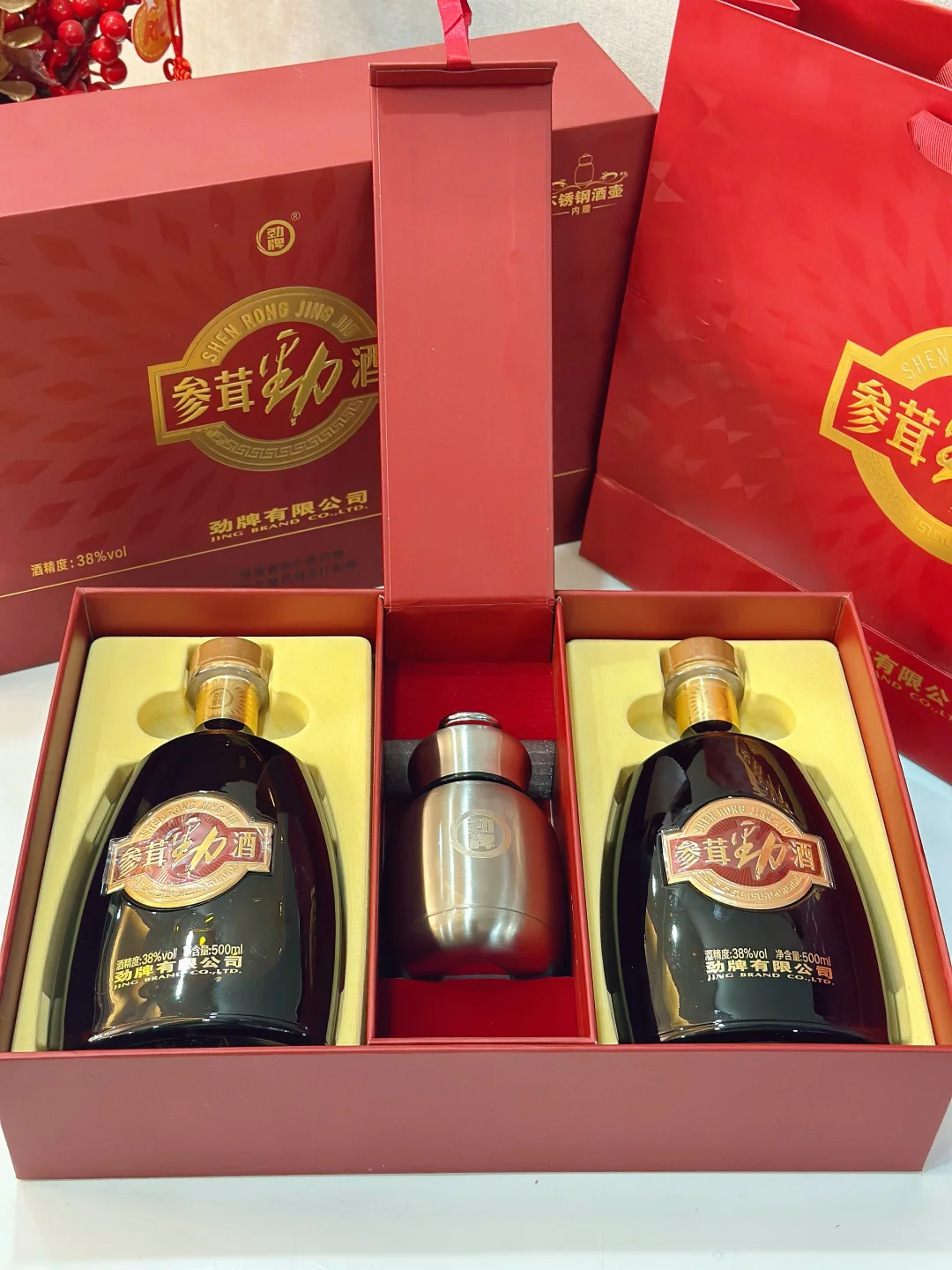 劲酒是多年的老品牌了,参茸劲酒是他们公司新推出的中高端产品,有保障!过年还不知道送什么给亲朋好友的,就选它准没错儿~