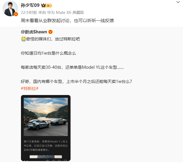 因为如果真的每一天卖出去一万多单,和我们国产新能源的销量数据,差太多了,而且好像特斯拉没有在线上做过什么宣发,这就更加让人摸不着头脑,所以很多网友都在问,到底是谁在买?