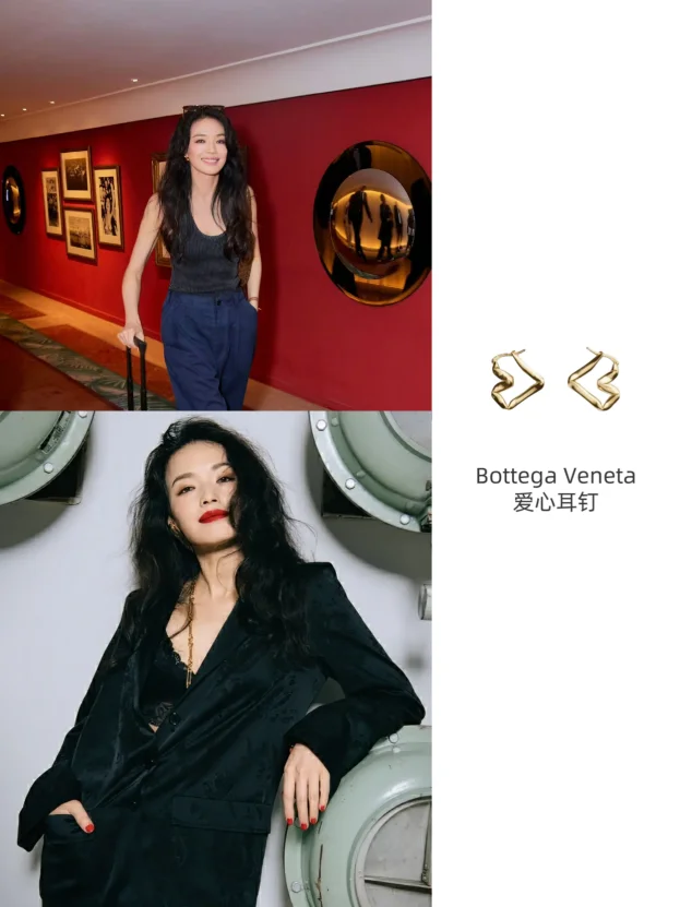 舒淇威尼斯路透的点睛之笔!这对爱心耳钉小巧又精致,金属的光泽感在阳光下闪一闪,让整个人更俏皮灵动。简单一戴,就能把气质点亮!