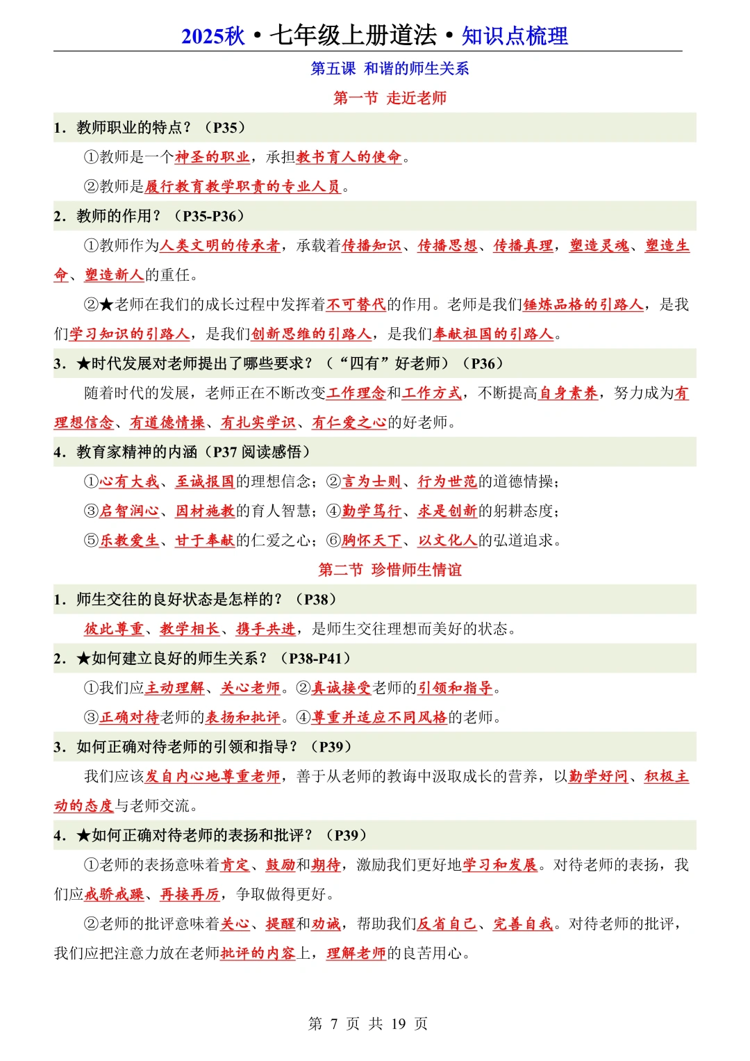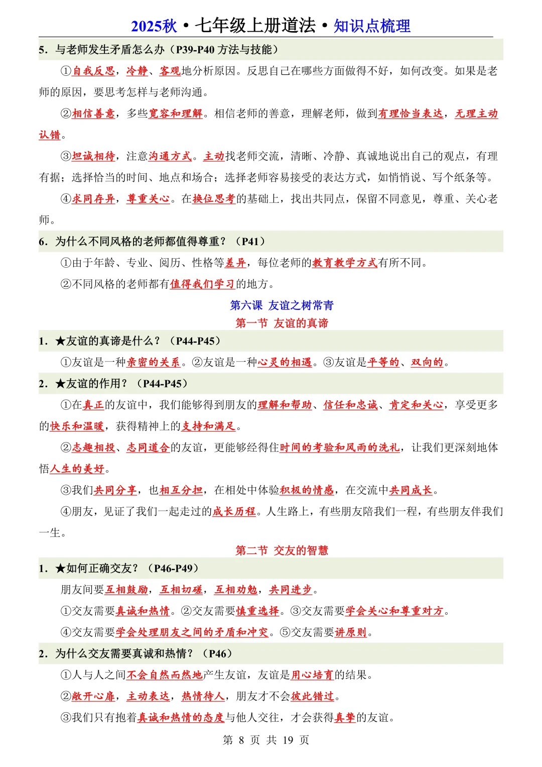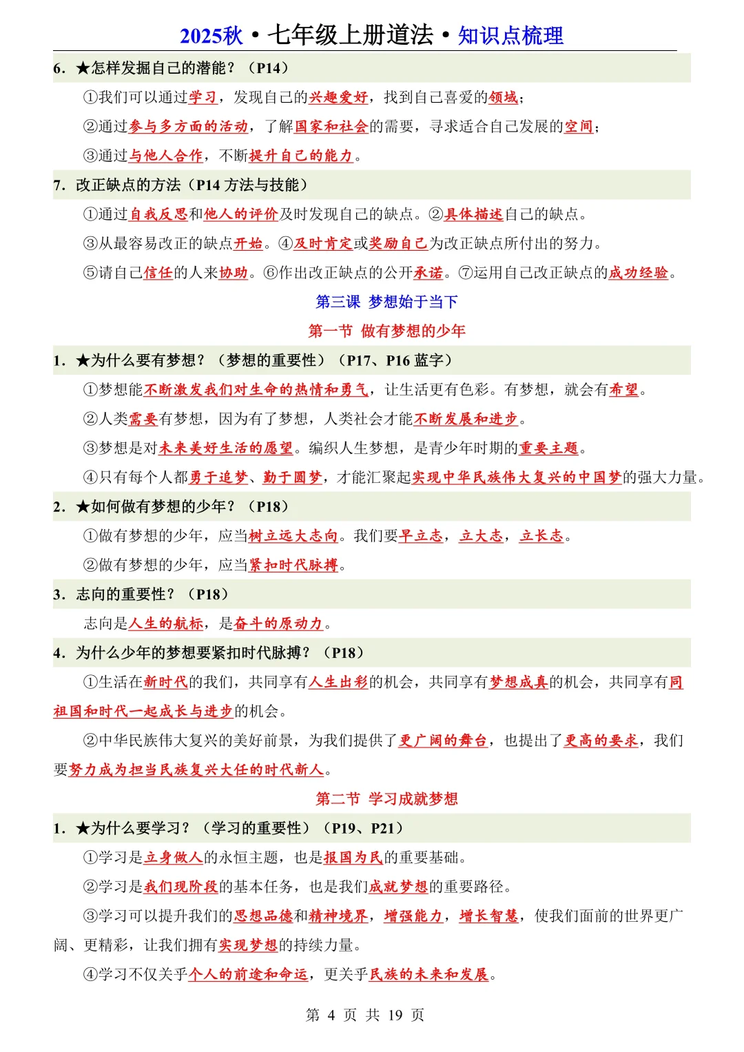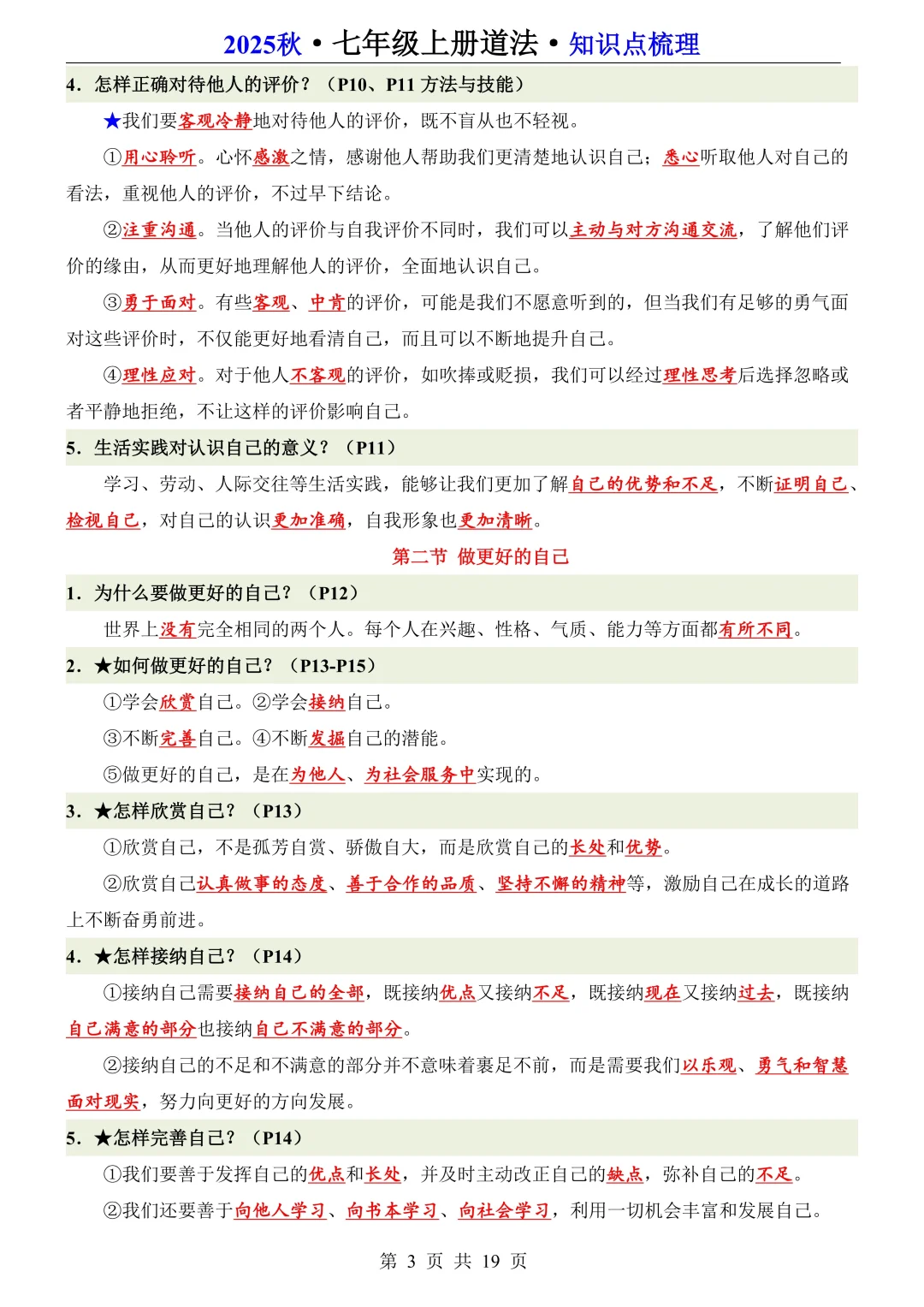 25新七年级上册道法全册知识点梳理