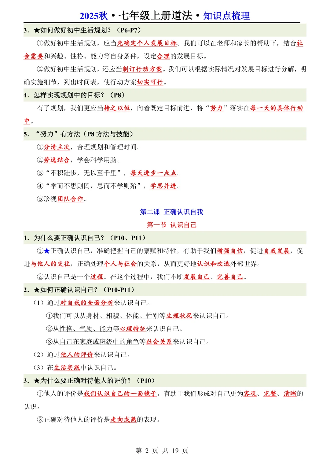 学渣逆袭指南 提高孩子学习成绩 六升七 暑假预习 知识点总结 道德与法治 道法笔记 七年级上册道德与法治 每天进步一点点 学霸秘籍