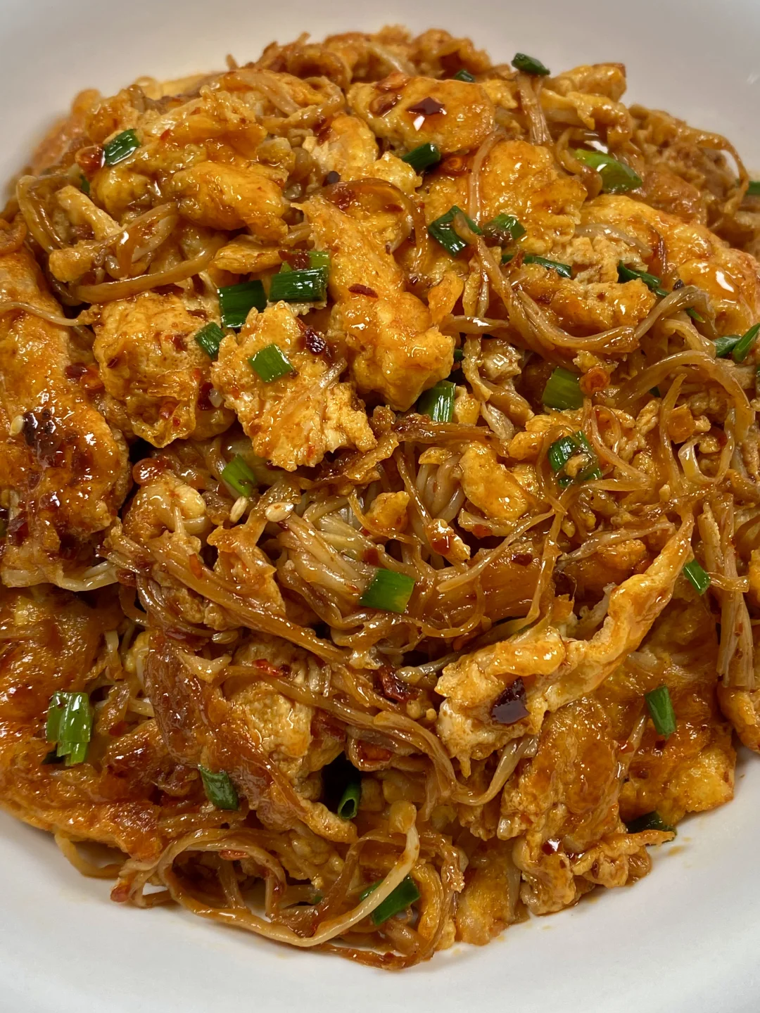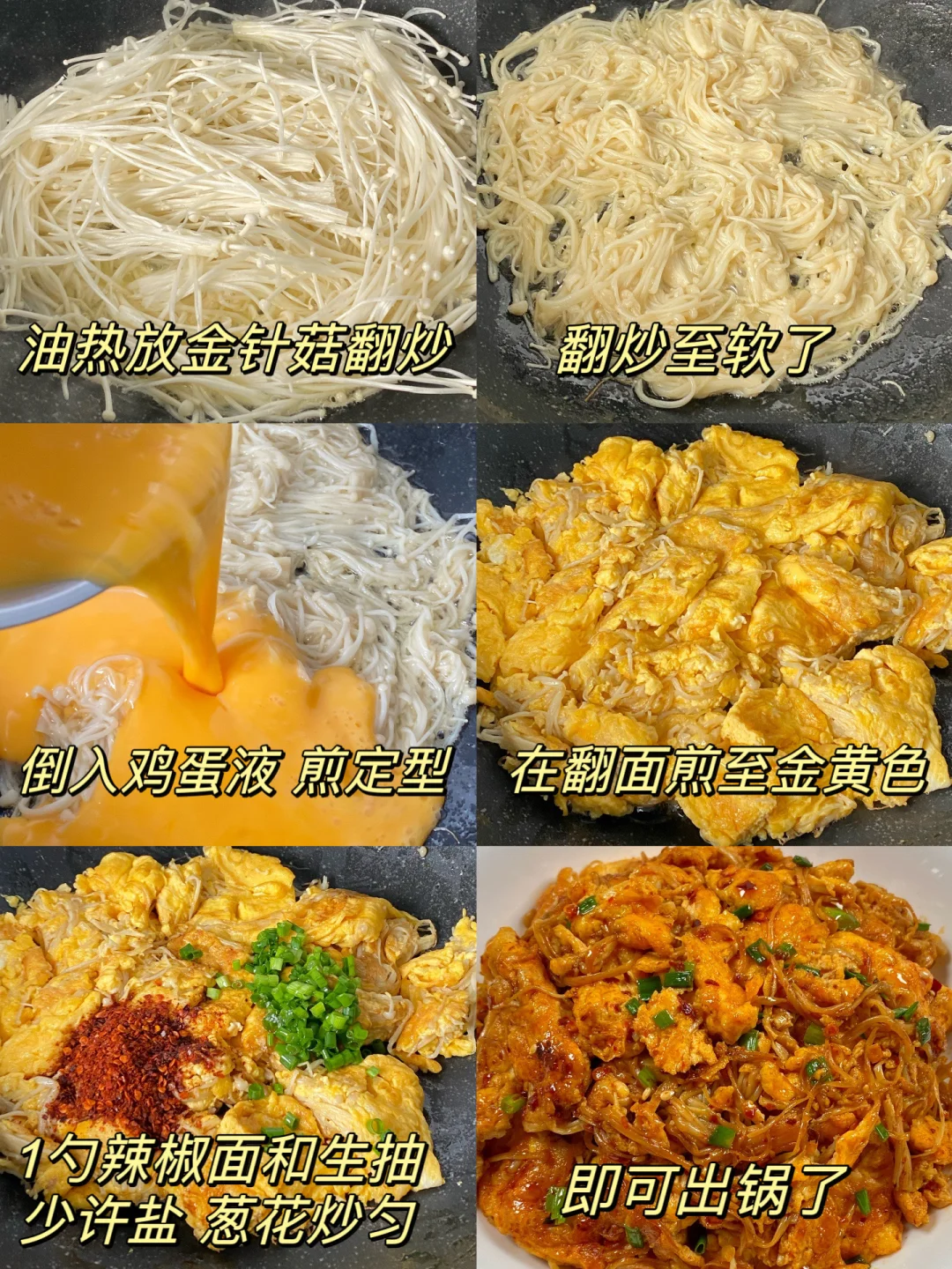 今天分享的是金针菇鸡蛋,巨好吃😋 金针菇裹满蛋液,煎的焦香酥脆,鲜香味美[哇R]味道真的绝了,妥妥的下饭菜!好吃到舔盘[哭惹R]姐妹们快去试试! 食材:金针菇 鸡蛋 辣椒面 葱花 做法简单,步骤看图集👆