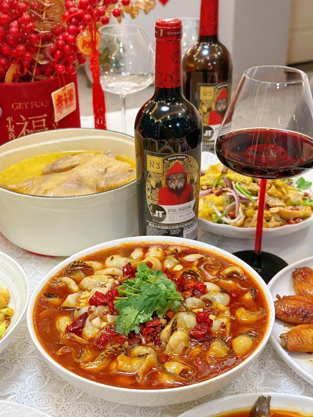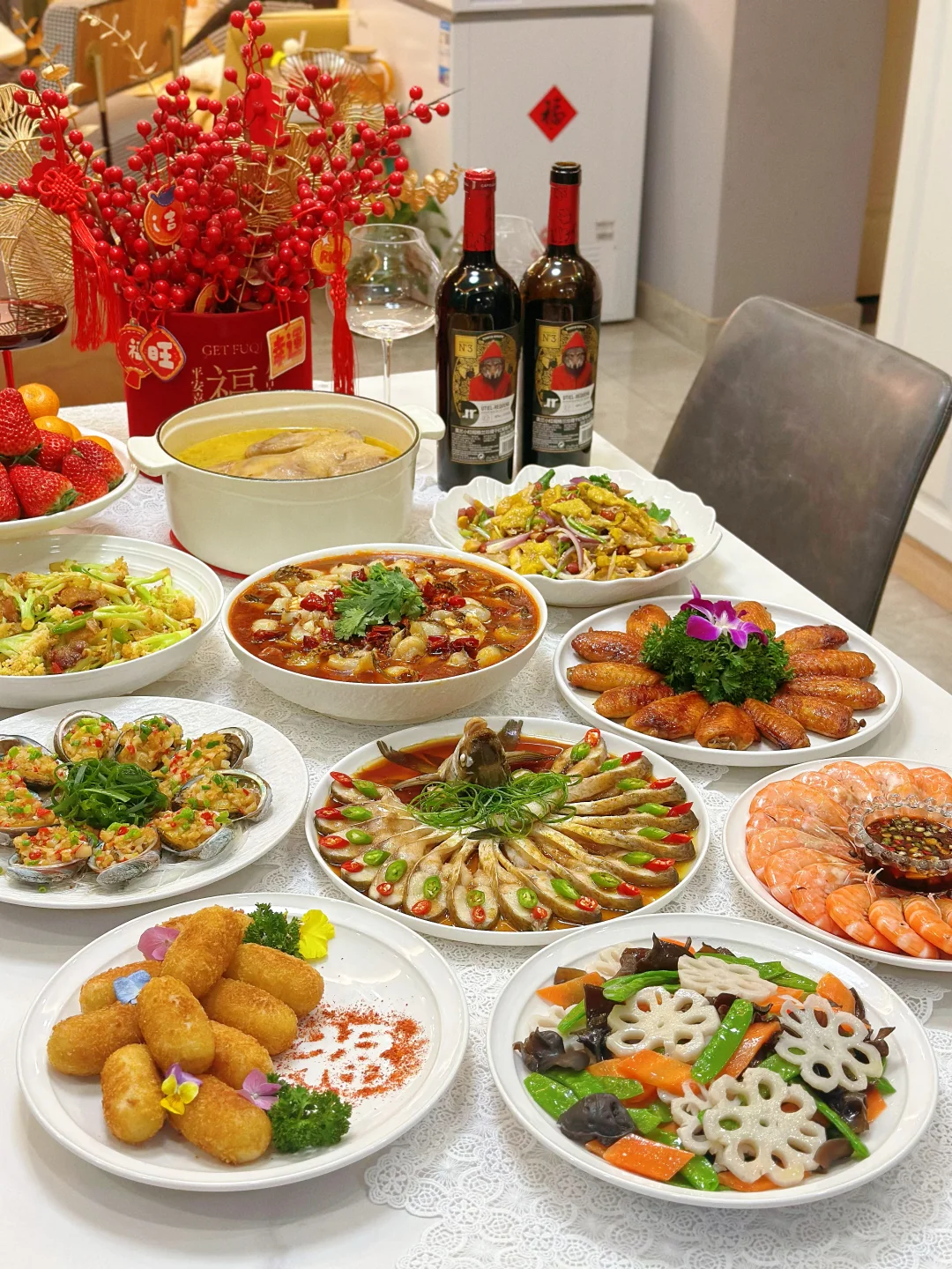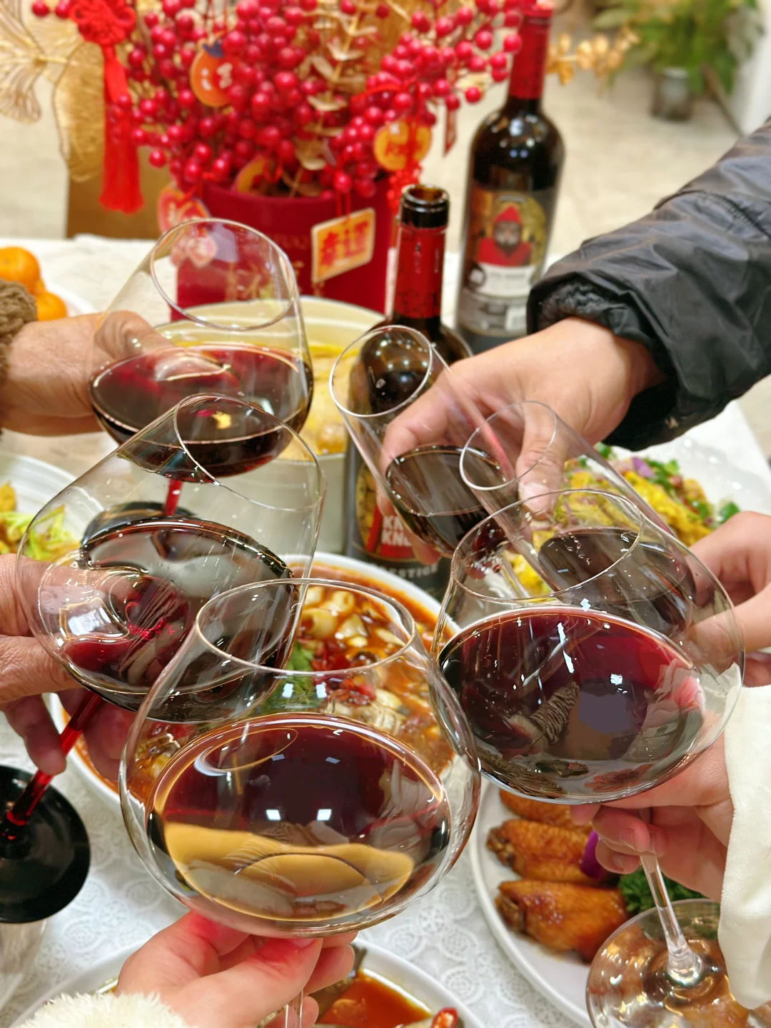 亲人团聚,围桌而坐,一大桌仪式感的团圆饭,配上美酒,畅饮尽兴,吃饱喝足!一起迎接新年的到来!