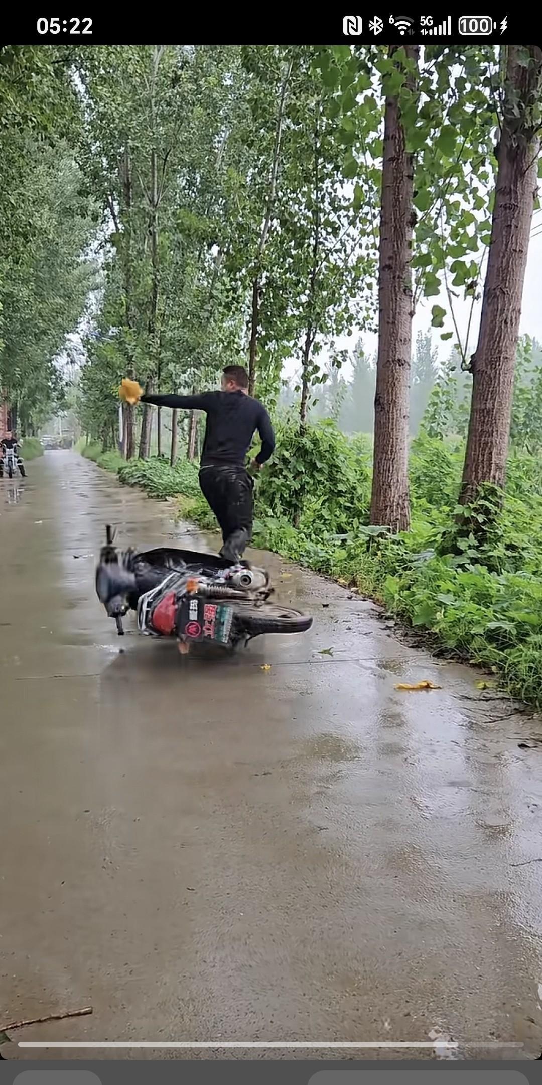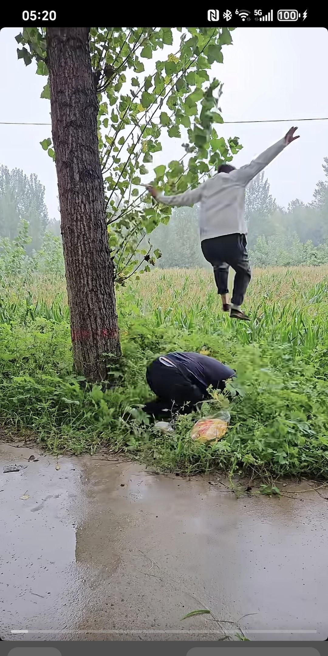 男子大白天给祖宗烧纸,突然感觉背上好似被什么东西踩了一下,整个人直接倒在了草丛里。等他爬起来,前前后后、左左右右瞧了瞧,嘟囔道:“咦,啥玩意儿,莫非老祖宗显灵了?”吓得他浑身哆嗦,赶忙跪下来给老祖宗磕头。磕完头,他撒腿就往摩托车那儿跑,结果没跑几步就滑了一跤。他爬起来骑上摩托车,用脚蹬了半天也发动不起来,扔下摩托车就跑。刚跑两步,又滑倒在地,爬起来后一边大喊一边跑…… 本来人在荒山野地给祖宗烧纸的时候心里就有些怕,这穿白衣男子还来这一下,看这家伙最后不是吓死就是摔死。玩笑开大了,这样能吓死人的。 这哥们身穿黑裤子,白褂子,一看就是练过,脚蹬雄飞展胳膊。
