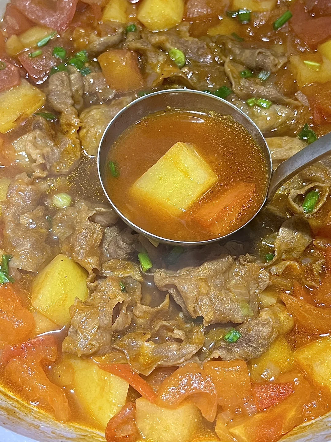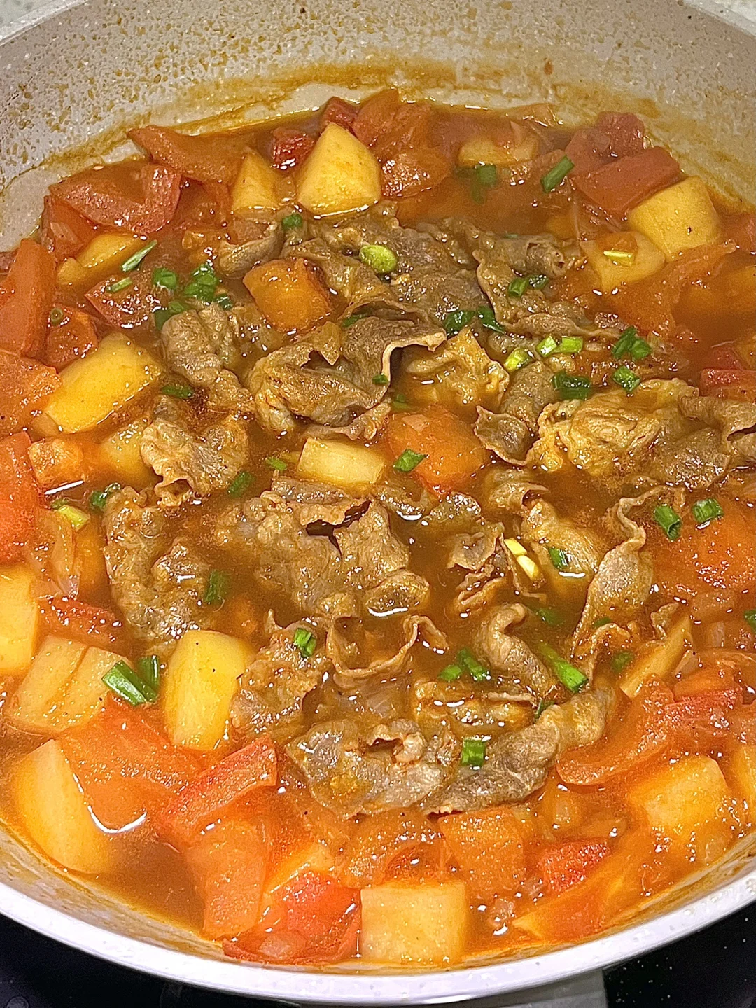 超级简单又好吃的番茄土豆肥牛完成啦!!番茄的味道超级浓郁!土豆超级软烂!肥牛超级入味!!