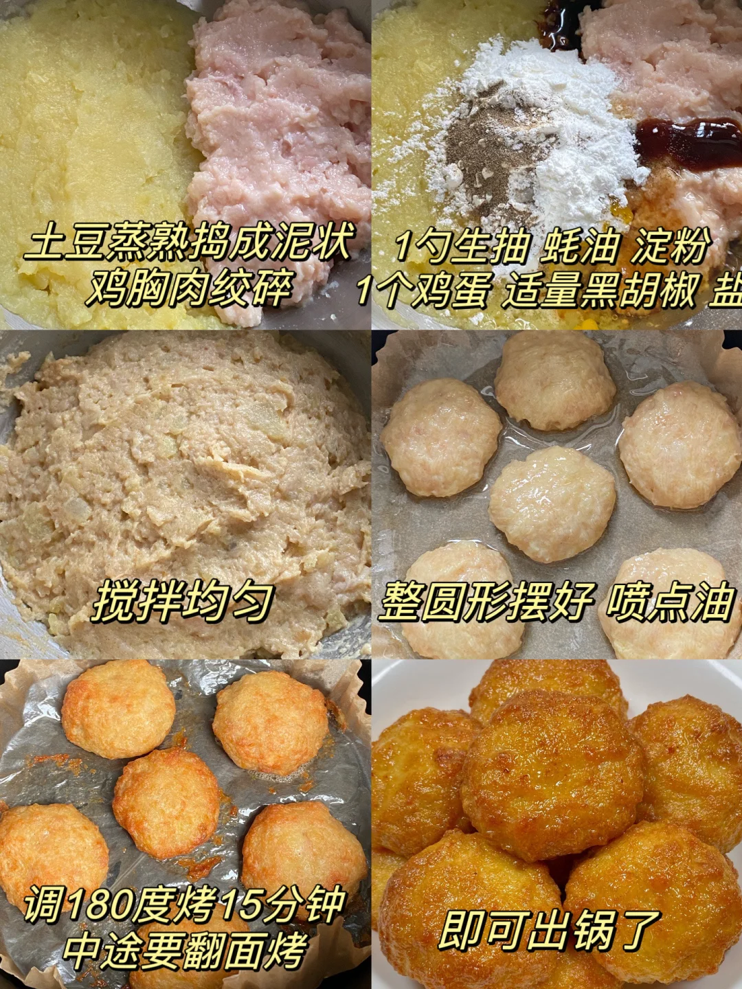 今天分享的是土豆鸡胸肉饼,巨好吃😋 外皮焦香酥脆,内里酥软可口,蘸点番茄酱绝了,既有沙沙的糯感,又有鸡肉的爆汁焦香,吃一口就爱上了!低卡又美味,饱腹感十足,有空气炸锅的快冲呀[派对R] 食材:鸡胸肉 土豆 鸡蛋 淀粉 做法简单,步骤看图集👆