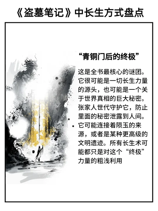 想要看懂盗墓笔记,你必须知道的那些诡谲复杂,代价巨大的长生方式…… 不知今年能不能等到青铜门背后的“终极”揭晓……