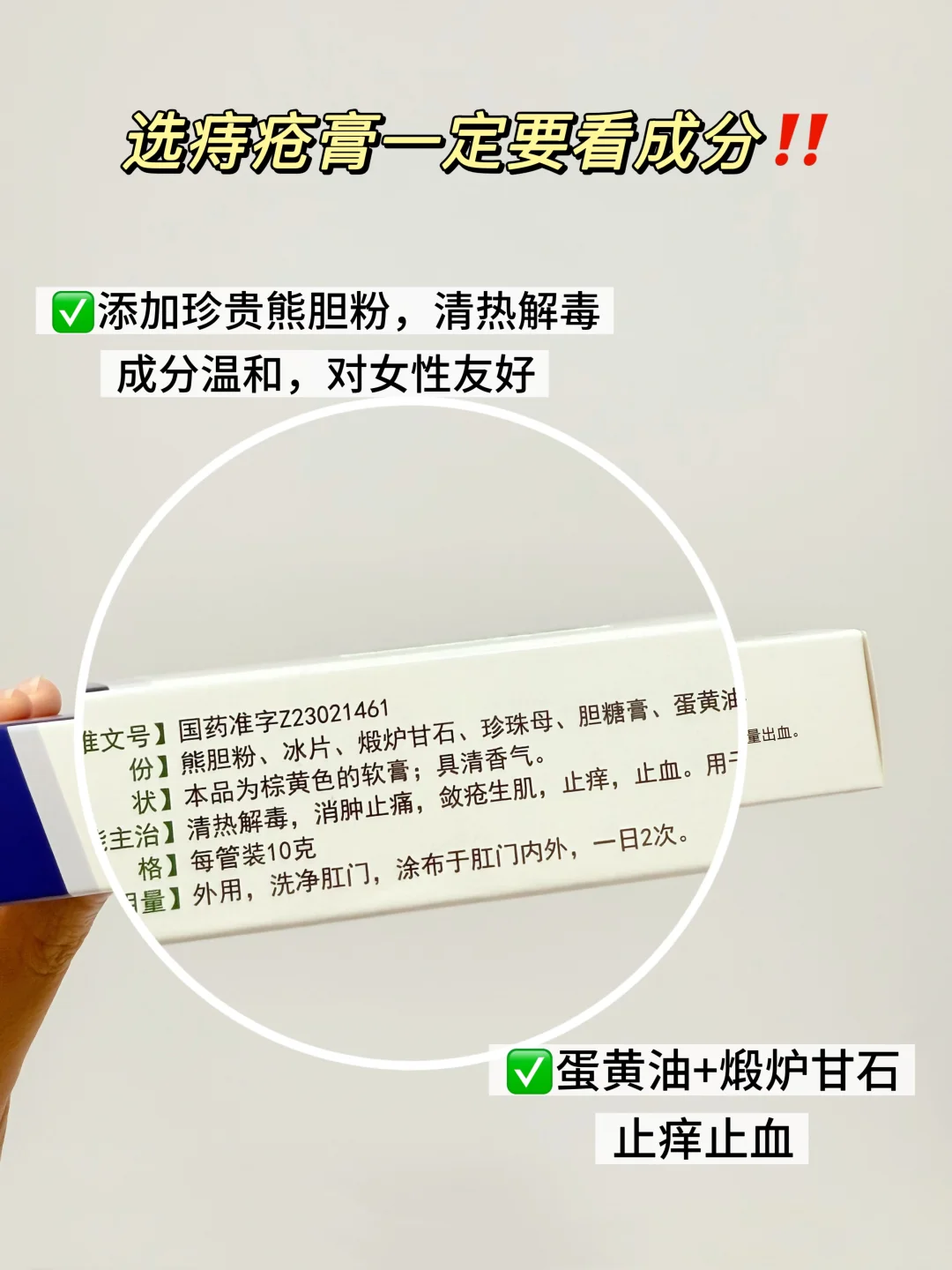 它添加的是被称为“药中黄金”的熊胆粉,能清热解毒、消肿止痛,李时珍的本草纲目里就曾说道“十年痔疮,熊胆涂之神效,一切方不及也”,足以见熊胆治痔疮的效果。