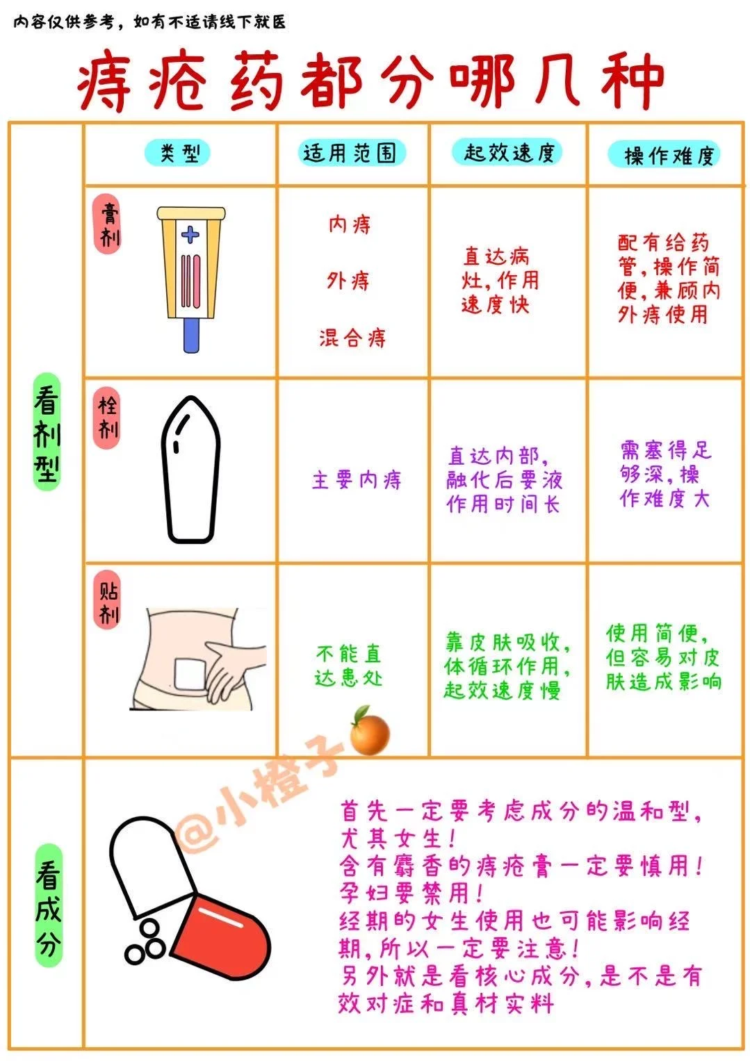 那如果是轻度痔疮用药的话,各种类型的痔疮药怎么选择呢❓
