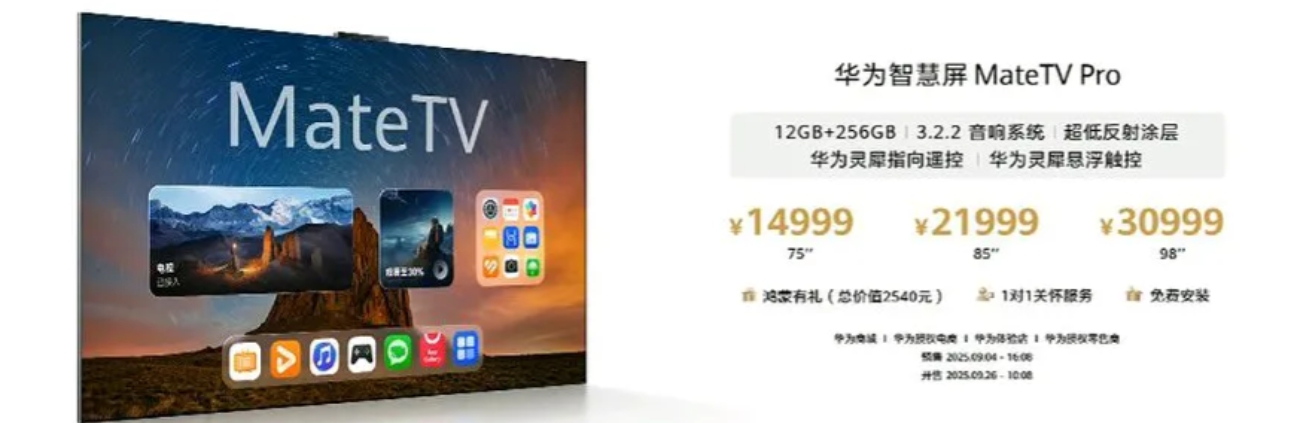 Mate TVPro版75":14999元 Mate TVPro版85”:21999元 Mate TVPro版98":30999元