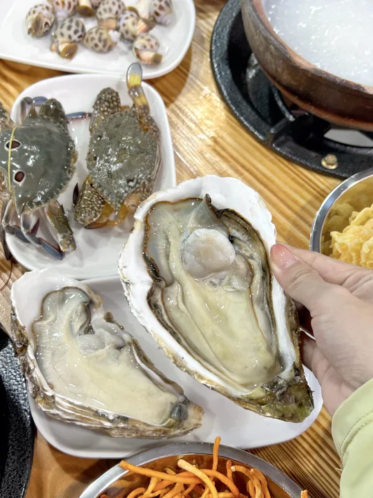 刷到公司附近这家新开的粥底火锅 下了班就立马和同事跑过来吃 真的是有被惊艳到了!!! · 种类很齐全,重点是真的很新鲜啊🥹 感觉海鲜比市场都要新鲜几倍! 🦀🦐拿到桌上都还在活蹦乱跳 据说都是老板每天早上亲自到市场挑选的 果然是我潮汕人做生意的风格! · 点了一个双人餐160💰还吃剩了很多! 感觉可以吃3-4人了,份量太实在了! 已经成为回头客了🎉希望能长久开下去~ · 🏠港沙洲粥底海鲜火锅(南城店) 📍东莞市南城街道隆溪路12号(停车🆓) 🈺16:30-次日02:30