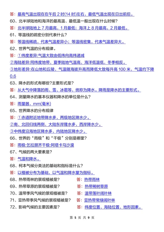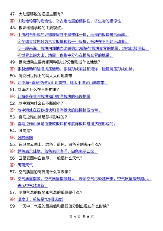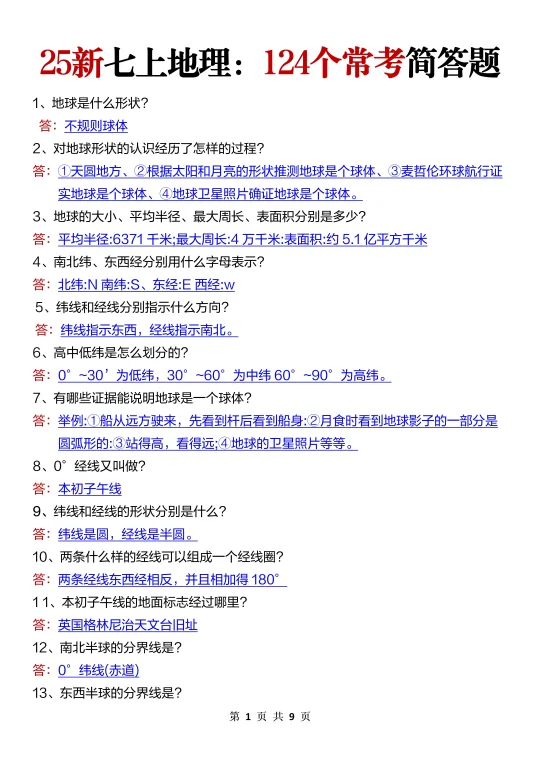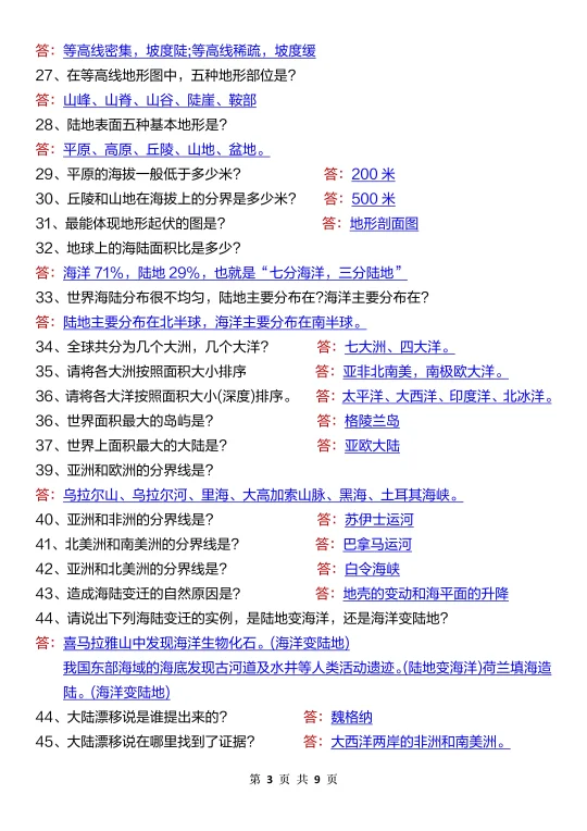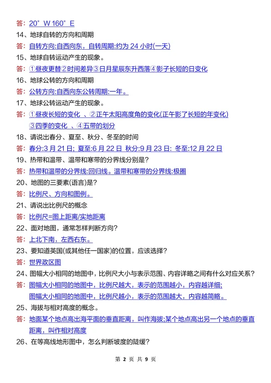 初中地理 地理笔记 必考考点 考点速记 地理 必背知识点 知识点总结 七年级上册七上地理 家长收藏孩子受益