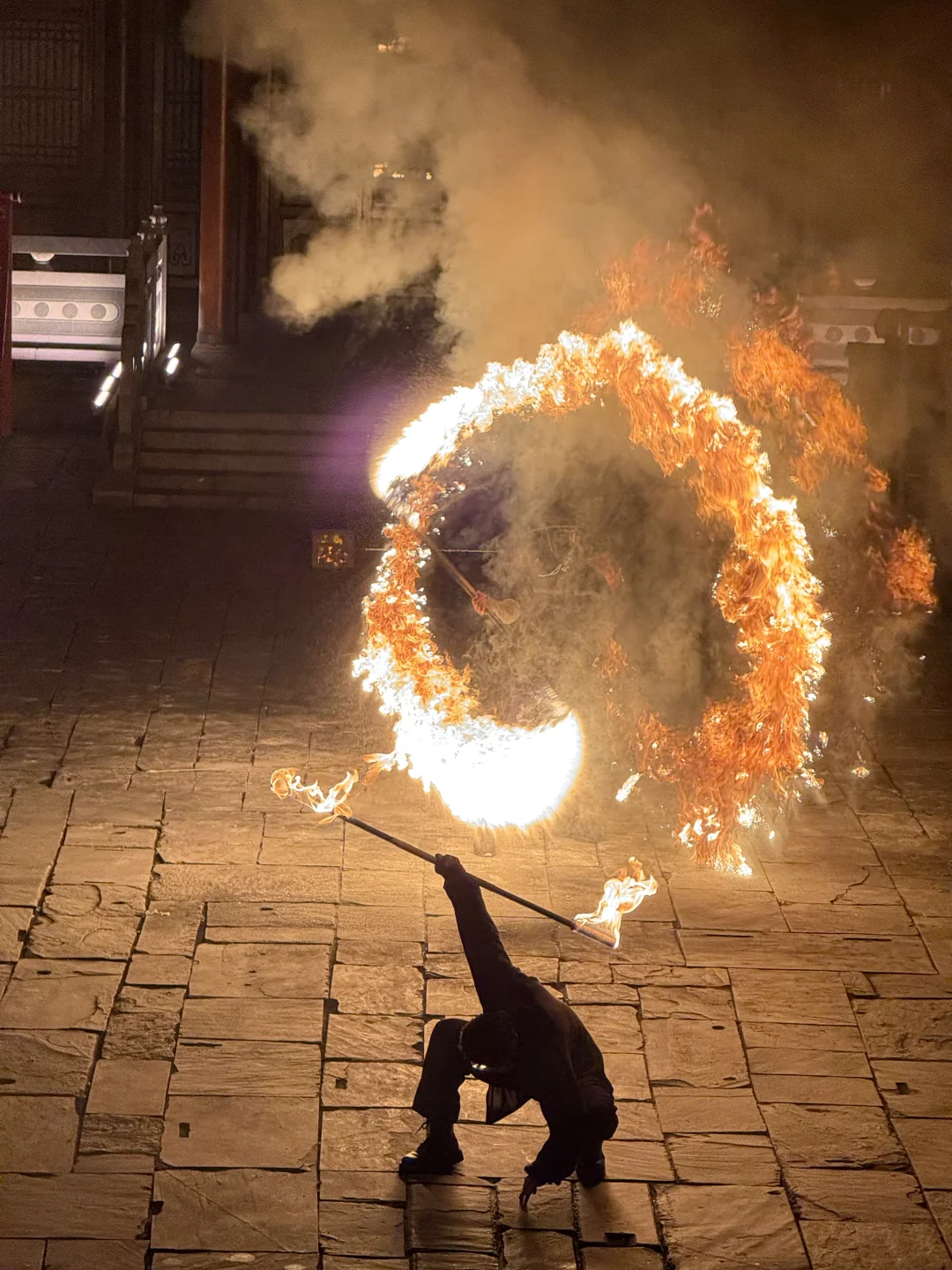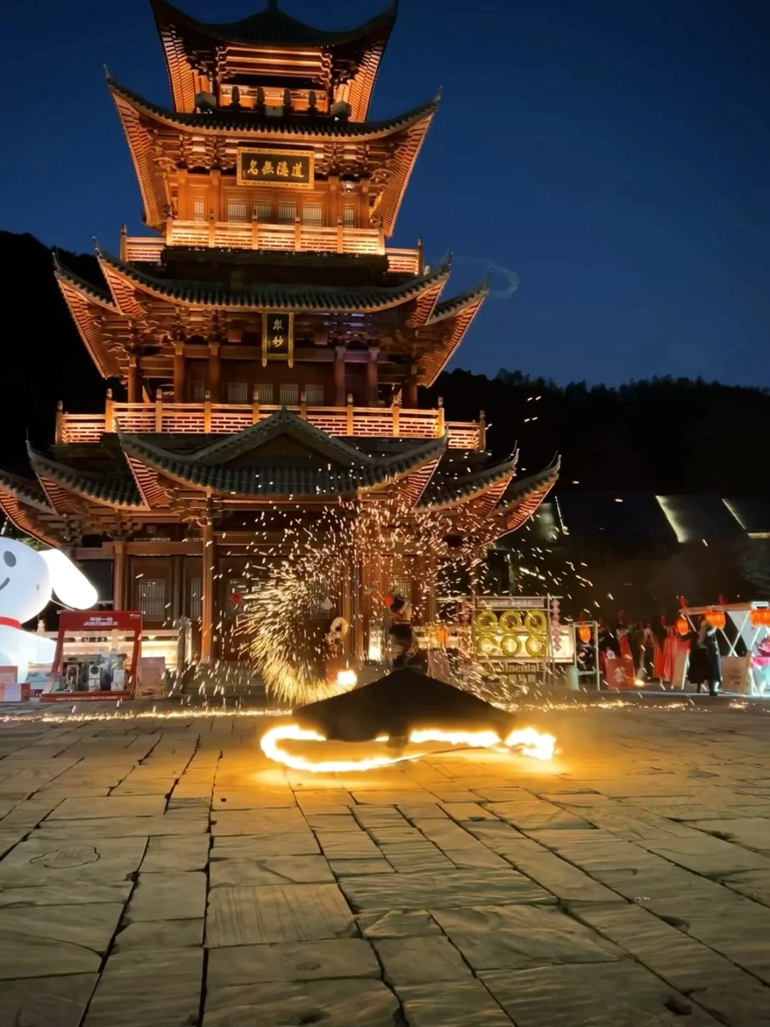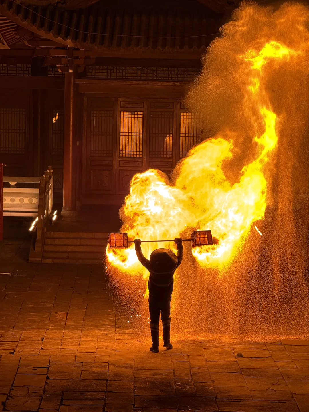2⃣️仙村百戏:非遗演出超多的!板凳龙好震撼!还有经典的火裙舞、火壶、喷火、变脸,奇妙的翻九楼、通天绳和皮影戏、木偶舞等,老少皆宜!根本看不过来!