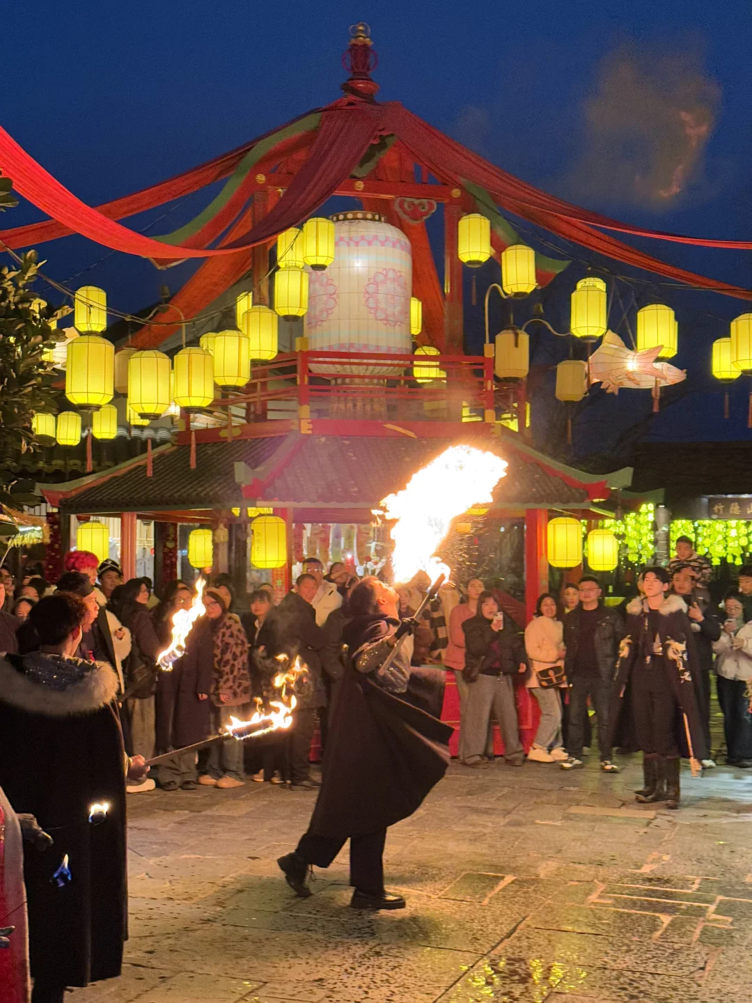 6️⃣宗祠广场:篝火晚会好热闹,互动性很强,还可以看到川剧变脸等节目