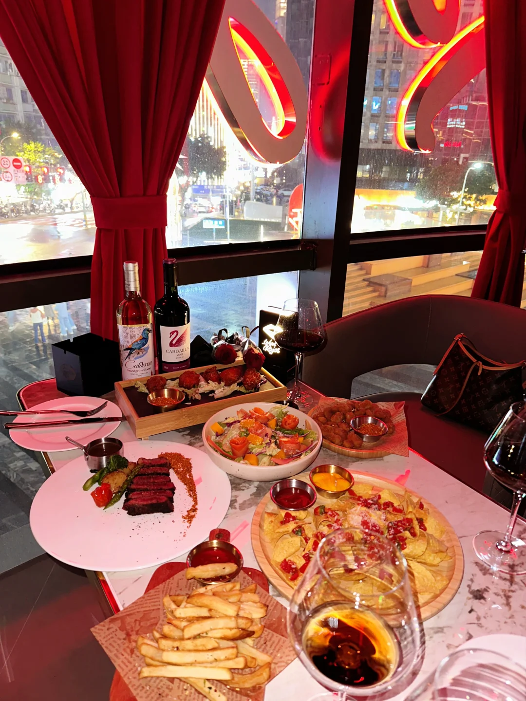 周末跟小姐妹一起聚会啦 在观音桥发现一家下午可以喝下午茶 晚上可以drink🍸的宝藏餐酒吧 这里的餐食都是以西班牙为主 整个氛围很浪漫 每桌都有玫瑰花🌹 适合约会 拍照打卡📷还有喜欢安静氛围的宝们 和小姐妹拍了很多好看的照片 晚上还有驻唱歌手现场演唱🎶 下次还会二次打卡嘟~~ jk:火星家jk