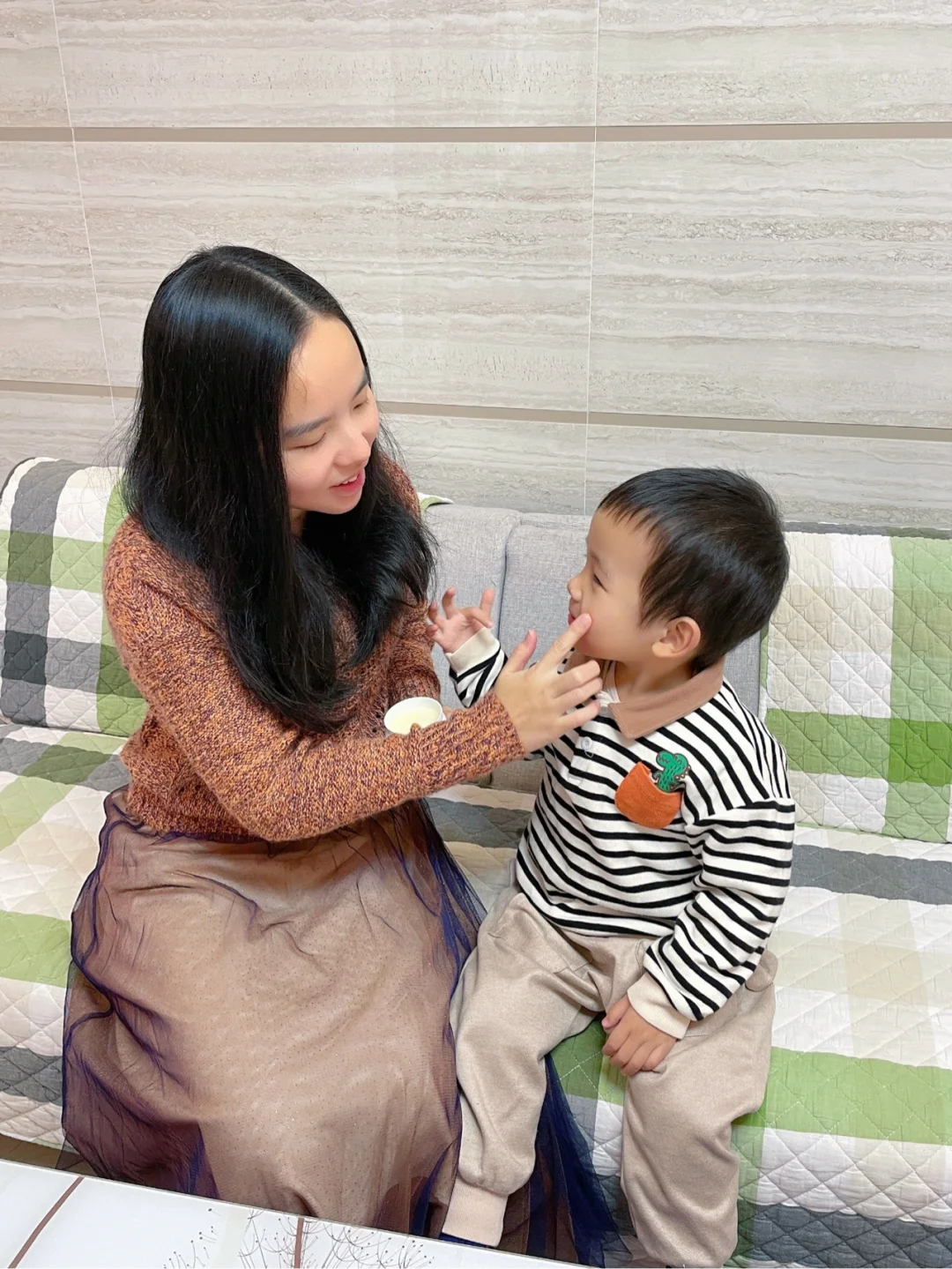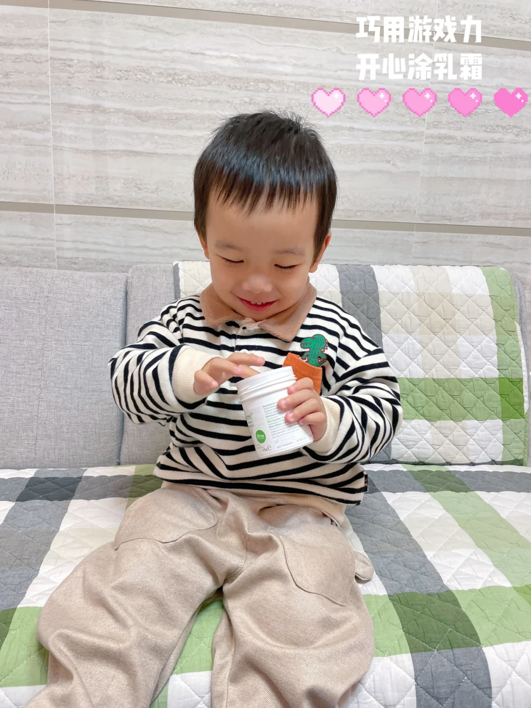✨怎么做:你假装是双皮奶。“我是甜甜的双皮奶,可好吃了,今天想和你的嘟嘟脸做朋友,嘟嘟脸和小手也想尝尝我的味道。”这时孩子就会乖乖让妈妈涂乳霜🧴,或者要自己涂