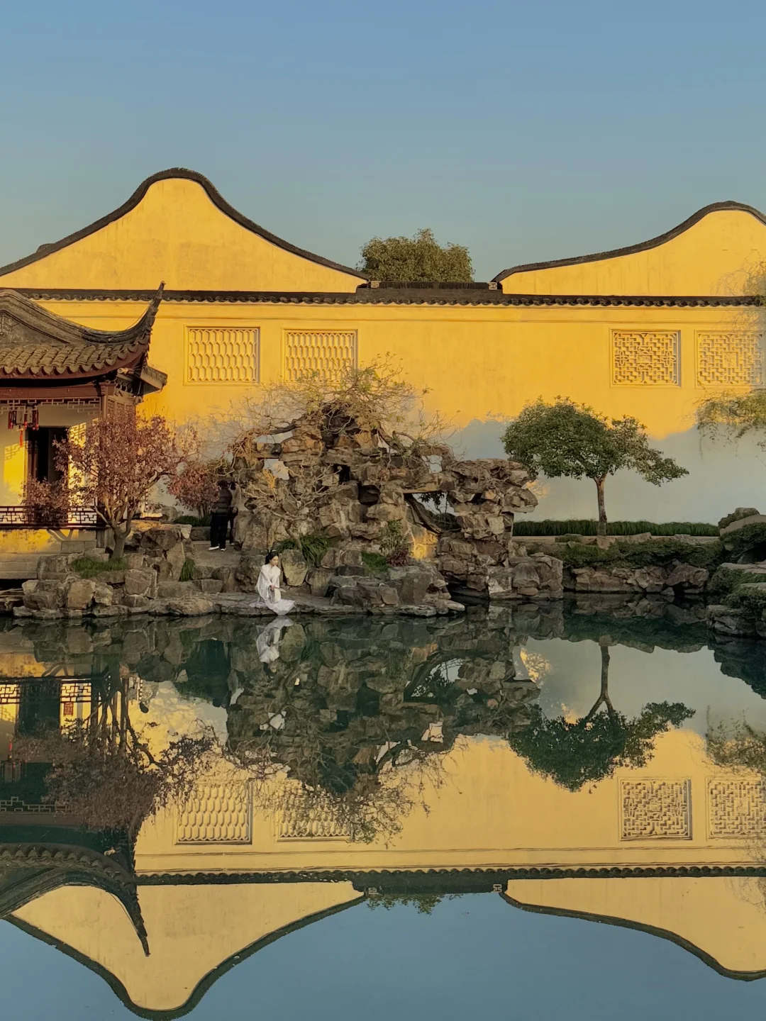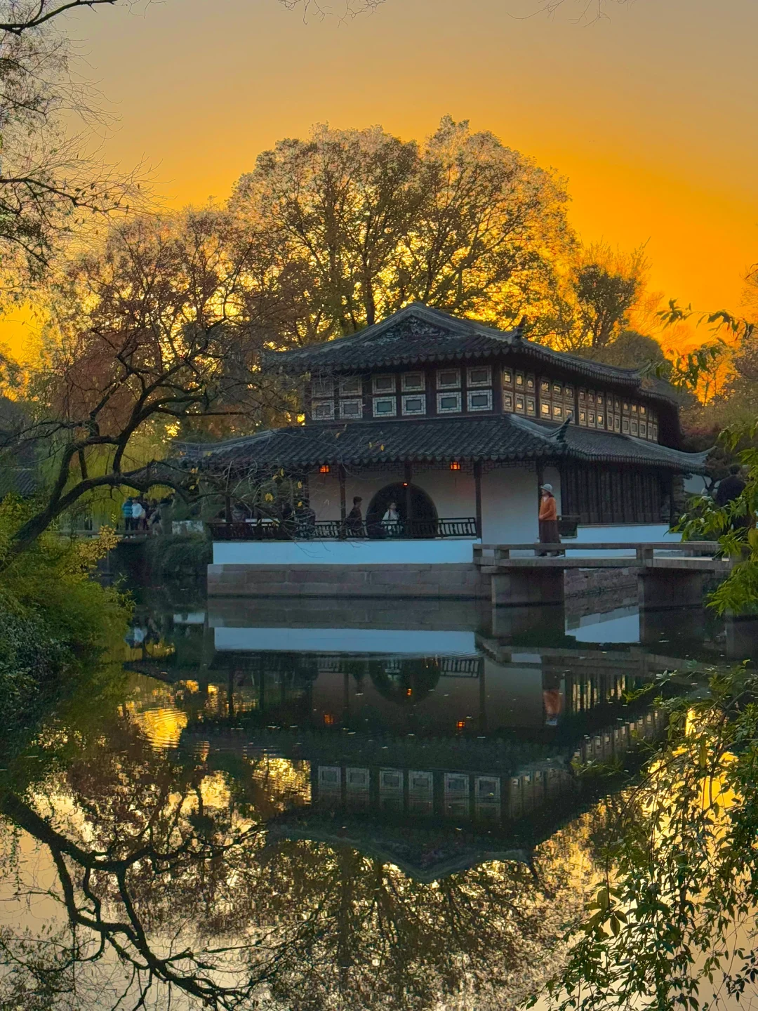 2️⃣网师园:江南中小古典园林代表,布局紧凑精巧,日落前白墙黛瓦,湖面倒映如画。🎫40r(p3)