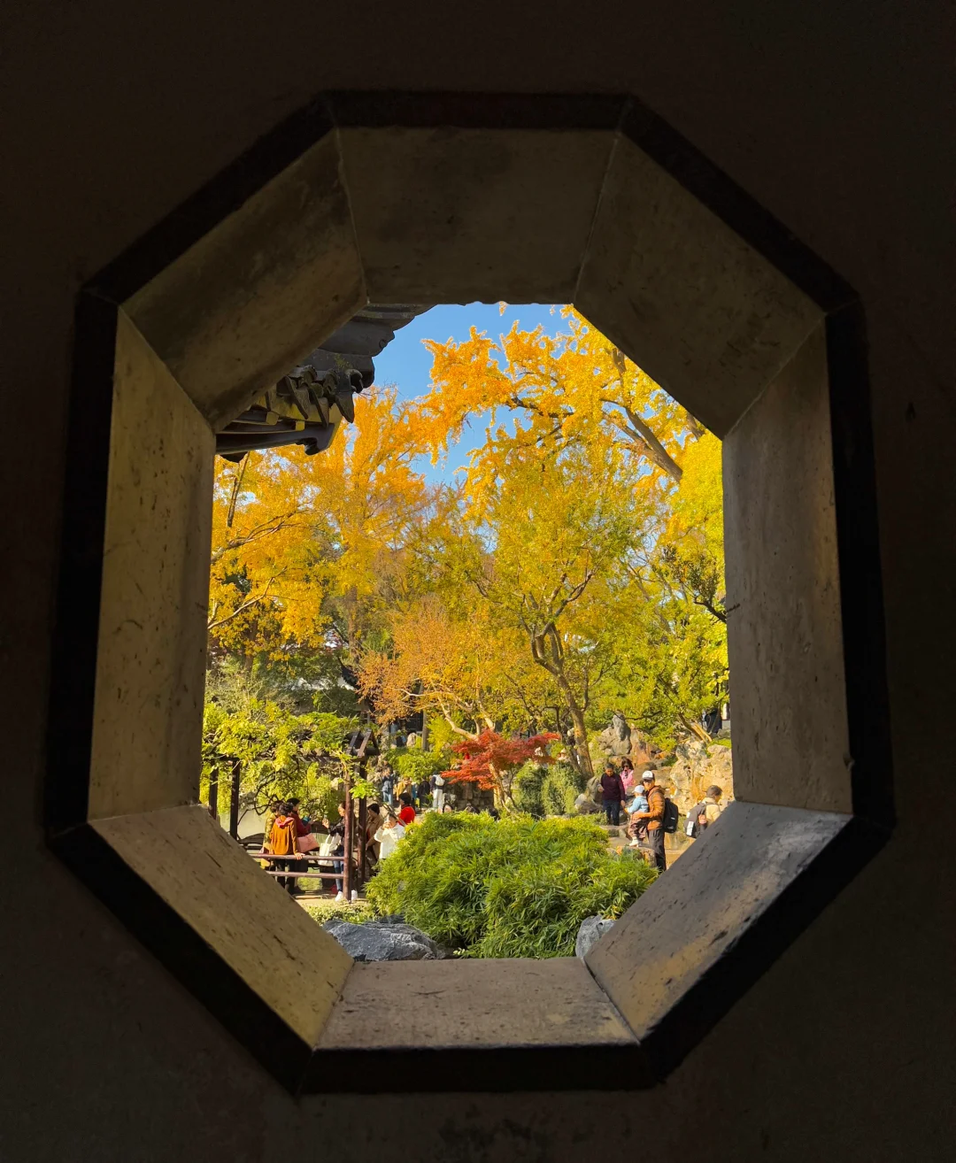 6️⃣留园:枫叶五颜六色,后山呼啸亭旁最美,山水布局精巧,建筑典雅古朴,奇石著称,冠云峰为太湖石绝品。🎫45r(p10、12)