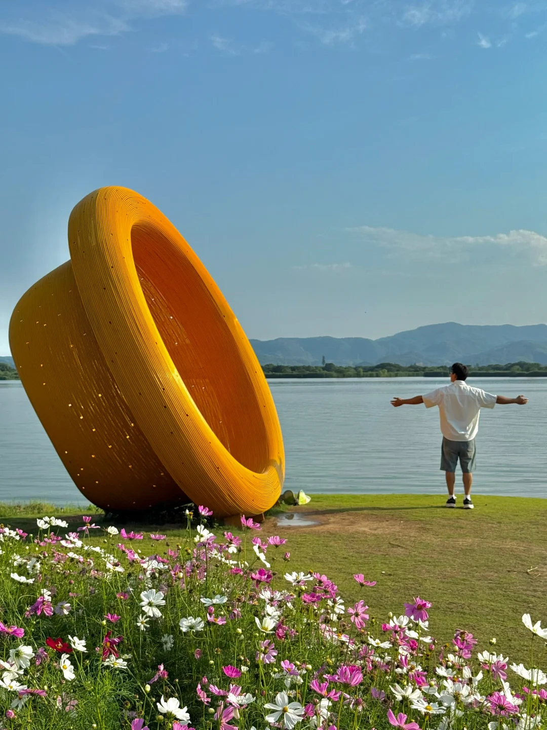 正值波斯菊盛开,一上岛就能看到大片花海,非常出片。岛上还有咖啡屋,逛累了可以坐下来喝杯咖啡,吹吹湖风,惬意~乐岛小火车🚞也可以体验一下