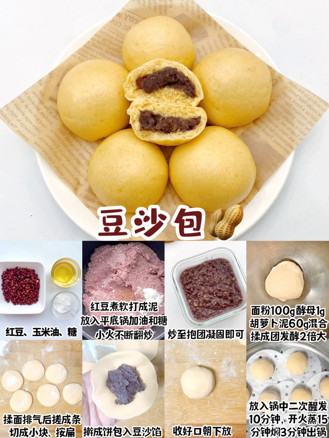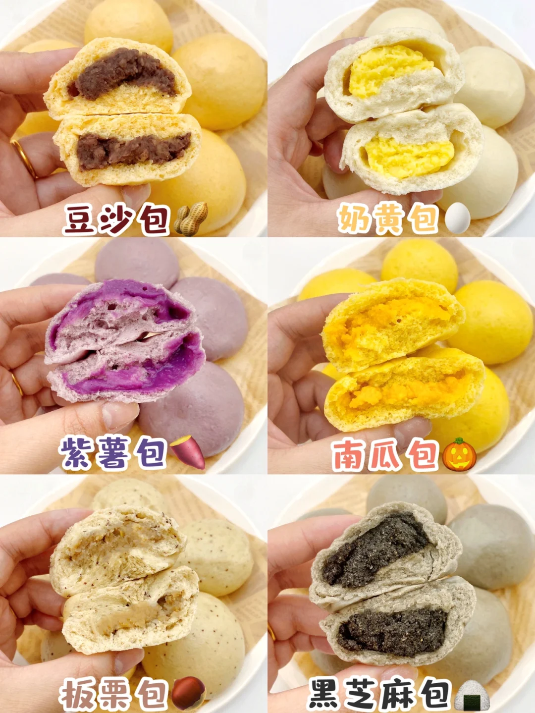 ▪️这些馅料用的食材10个月以上宝宝就可以吃了,⚠️但要注意不满1岁的宝宝不要加糖,还要把黄油换成辅食油或者玉米油。我家宝宝10个月就给吃豆沙包了,馅料部分不放糖就可以了。