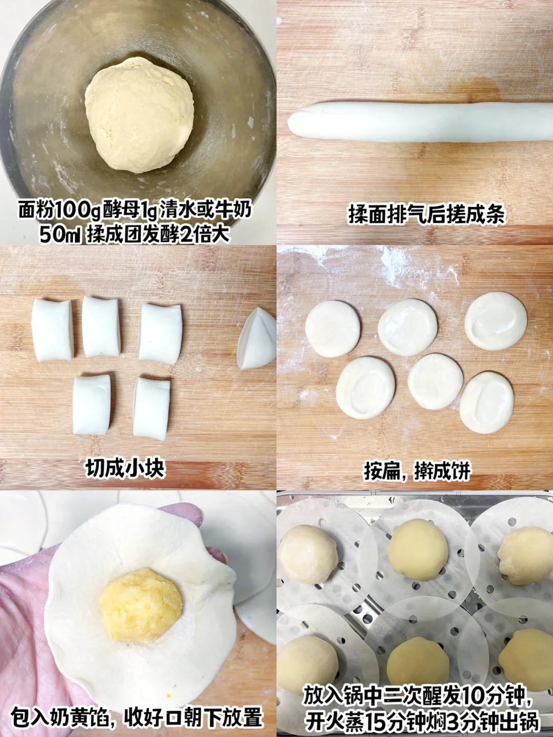 ▪️这次用的是两次发酵的方法,用一次的也可以,在奶黄包笔记中也分享过做法。