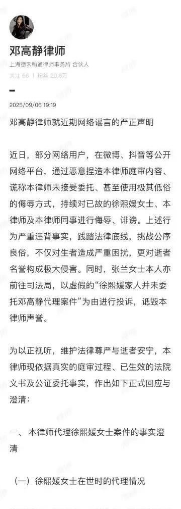 大S生前诉汪小菲一审输了, 然后她又提起上诉, 二审没开庭,由于她的离世而被迫搁置。 如今大S的老公具俊晔联手丈母娘黄春梅进行二诉,能赢吗?我看悬!也就是湾湾徐家,现任告前夫,这是穷疯了吗?无论汪小菲有钱没钱,都不会给他一个钢蹦。 有理没理,法庭上见!案子没开庭,徐家律师邓高静发文,含糊其辞引导舆论,难道不是想先入为主,带带节奏,搅混舆论? 律师建议,张兰汪小菲方想反击,就拿出证据,公开一审判决,以免被舆论裹挟。