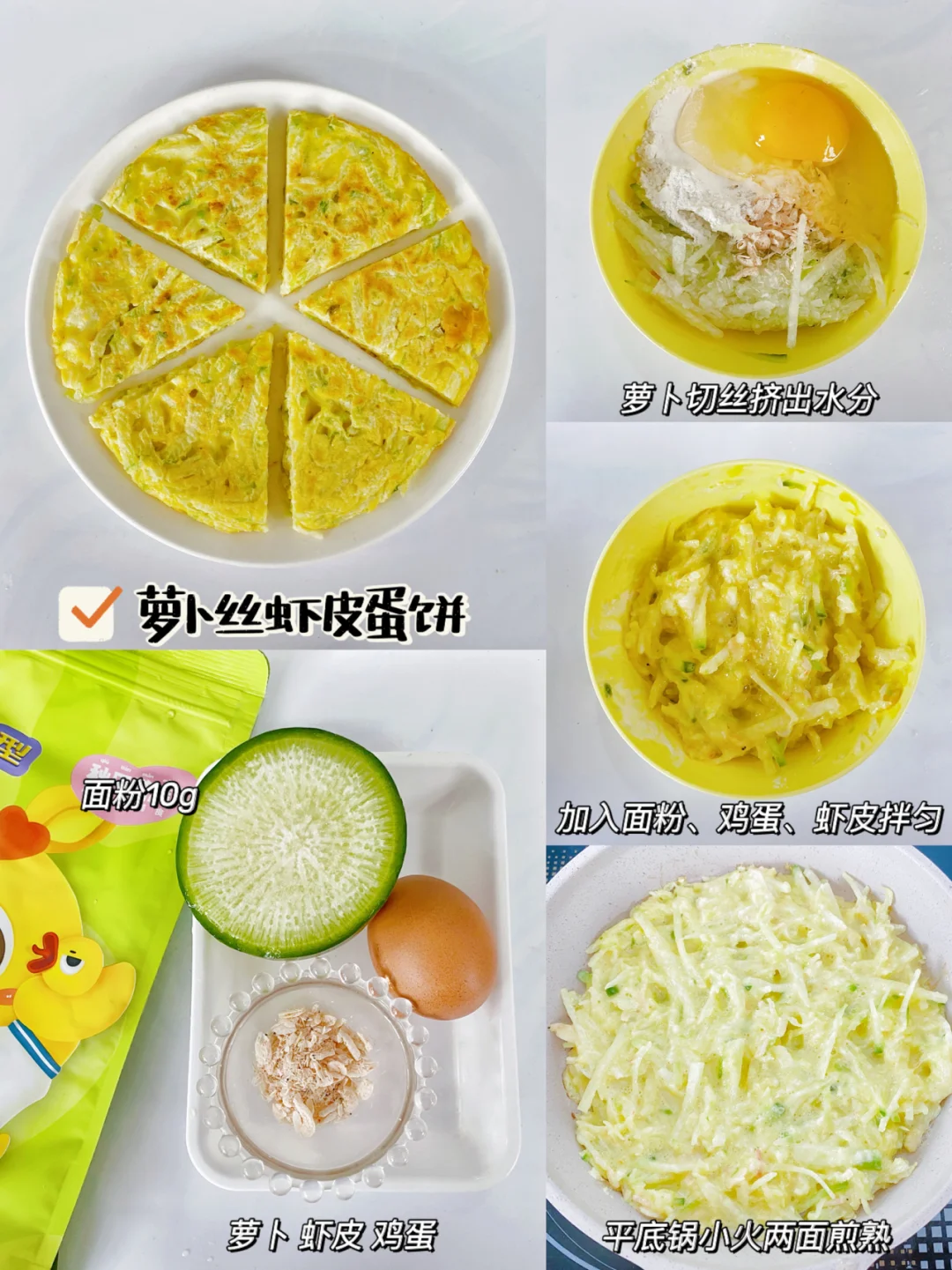 萝卜切丝或者擦成丝,挤出水分。加入鸡蛋面粉搅拌均匀。平底锅刷油全程小火两面煎熟即可。