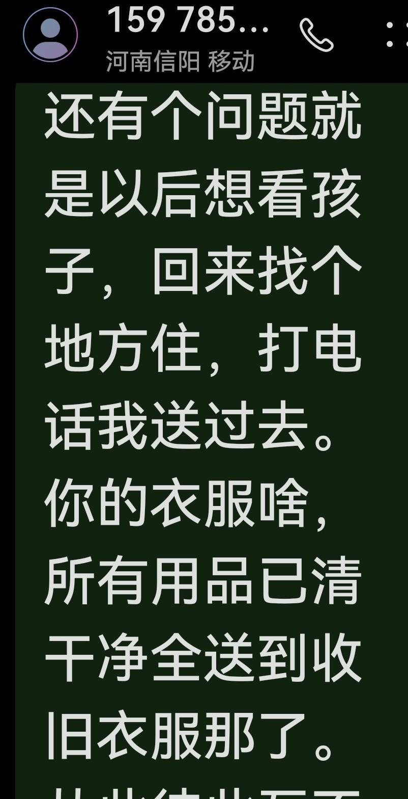 终于和biaozi断联了,终于不在被打扰了。离婚的朋友出来说说,离婚后你们还联系吗?离婚离开家的那一个是不是走前就把自己所有的东西,包括衣物都搬走了? 我前妻打着想孩子天天电话,衣物都叠好选一个柜装,就是不收走。七夕不知道什么情况,但七夕后周日不上班,在外地给孩子点外卖,我去拿,很生气,就打电话说她,不要留我号码,就几秒就听到身边一男的说话声。然后我就挂了,直接回信息让他不要再联系我。然后就给她号码拉黑了。她的衣服还占我柜子三个隔层,我到底要不要给清出去,让她带走也不带,说还要回这,我说你回这没关系,但只要不住我家,你爱咋咋地。东西就是不收,我真的要强扔吗?