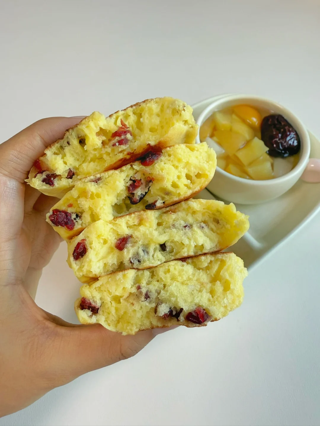 今日早餐分享🍳 蔓越莓发面松饼+蒸水果 姐妹们这个饼真的好好吃🤤🤤 发面饼养脾胃,简单快手,全家爱吃~ [哇R][哇R][哇R][哇R]