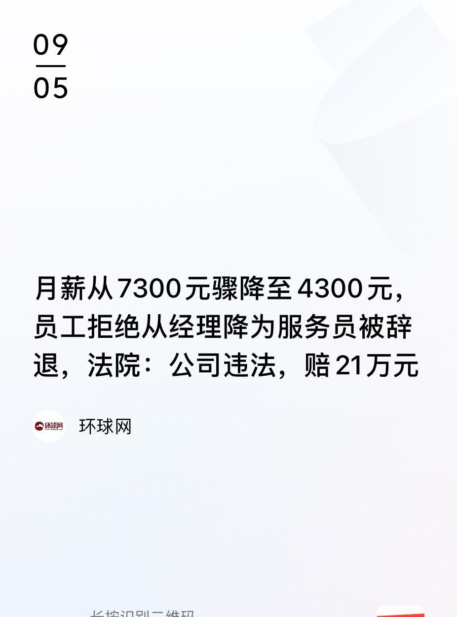 海南,一男子入职酒店后,被老板调到其儿子的酒店做经理,可是一次工作时,男子不慎受伤被评定为了工伤十级,万万没想到,酒店竟然直接将男子从经理调整为服务员,工资还降了3000元,男子不服,直接将酒店告上了法院,法院最终判了。 男子李某在20年的时候,入职了一家酒店做经理,因为干得不错,于是就被酒店老板调到了其儿子的酒店继续做经理,工资也涨到了7300一个月。 可是干了一段时间后,李某不慎受伤被评定为工伤十级,修养结束后,李某于是继续来上班,结果公司却让李某到前台去做服务员,工资降为4300一个月,本来是经理,不仅工资降了3000,还成了服务员,这让李某无法接受,于是双方不欢而散。 见李某不服从工作安排,于是,酒店就做出了决定,直接将李某做出开除处理。李某不服,当即提出了劳动仲裁,要求公司赔偿损失。 由于公司在李某工伤之前,给李某断了社保,所以,李某提出本应该由社保支付的赔偿款,应当全部由酒店承担。 事发后,有人说,我也是经理,公司效益不好就会各种挑毛病,然后找各种鸡毛蒜皮的事情扣工资,然后找理由裁员,别提压力多大了,如果是在国企,这些事情根本不会有,所以为什么私企幸福感一点都没有。 还有人说,企业没了,没有了收入,怎么刺激消费,不能支持员工这样的诉求,不然企业都没有了,大家都失业了。 也有人说,你在人家公司干活,给你调整岗位怎么了,难道还不行了? 其实,调整岗位不是不行,《劳动合同法》第三十五条规定,用人单位与劳动者协商一致,可以变更劳动合同约定的内容。这包括工作岗位和薪资待遇等关键条款。 因此,在双方协商一致的前提下,用人单位可以调整劳动者的工作岗位,但不得单方面降低劳动者的薪资待遇。 那么,酒店给李某调整工作岗位是没有问题的,但是降低了李某的工资,这显然是违背了法律的规定,由此,李某可以要求解除合同,并要求公司支付补偿金。 可是,公司并未这样做,而是以李某不服从公司安排为由,将其解聘,那么,这就不是补偿金的问题了,而是要支付赔偿金,这一下子就多支付了一倍的赔偿款。 除此之外,因为公司没有给员工缴纳社保,在员工出了工伤之后,那么,相关赔偿是有公司支付吗? 依据《社会保险法》第四十一条规定,职工所在用人单位未依法缴纳工伤保险费,发生工伤事故的,由用人单位支付工伤保险待遇。 所以,如果企业没有给员工买社保,出了安全事故后,将会由企业来买单。 最终,法院也是这样处理的,最终判决公司支付李某赔偿金、一次性伤残补助金等各种赔偿21万多元。假如公司当时给李某买了社保,赔偿金大约是2万多,那么,公司会至少减少19万的损失。 对此,你对本案有什么看法? —————————— 关注我,带你评析法律热点,关注冷暖人生。 文章原创,抄袭必究 #头号创作者激励计划#