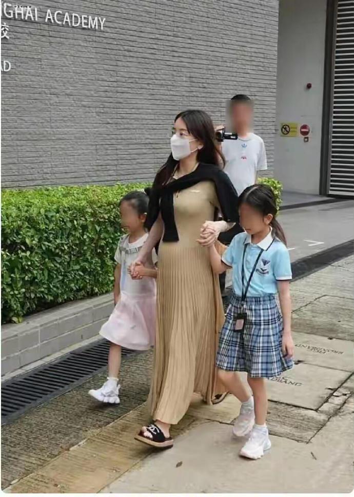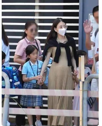 天王嫂方媛接女儿放学,三胎孕肚明显,看着好辛苦的样子