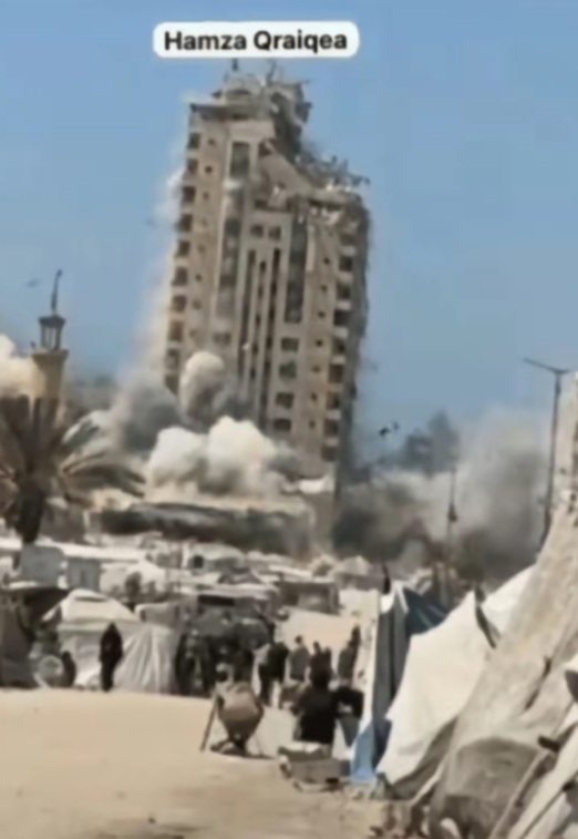 加沙最高的楼被以色列炸了!以色列在加沙任何军事行动都会‘师出有名’?看谁都像哈马斯,橄榄树林碍事,民房碍事?记者也是穿着马甲的哈马斯,说你是哈马斯,不是也是,先炸了再说?在加沙,以色列说了算!加沙人与其等着被清理走,还不如主动离开,至少还能活命吧?