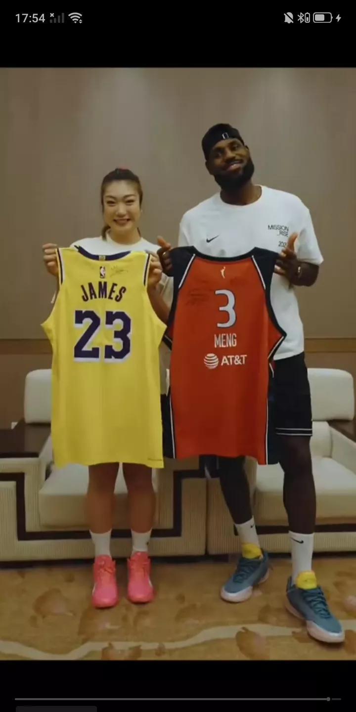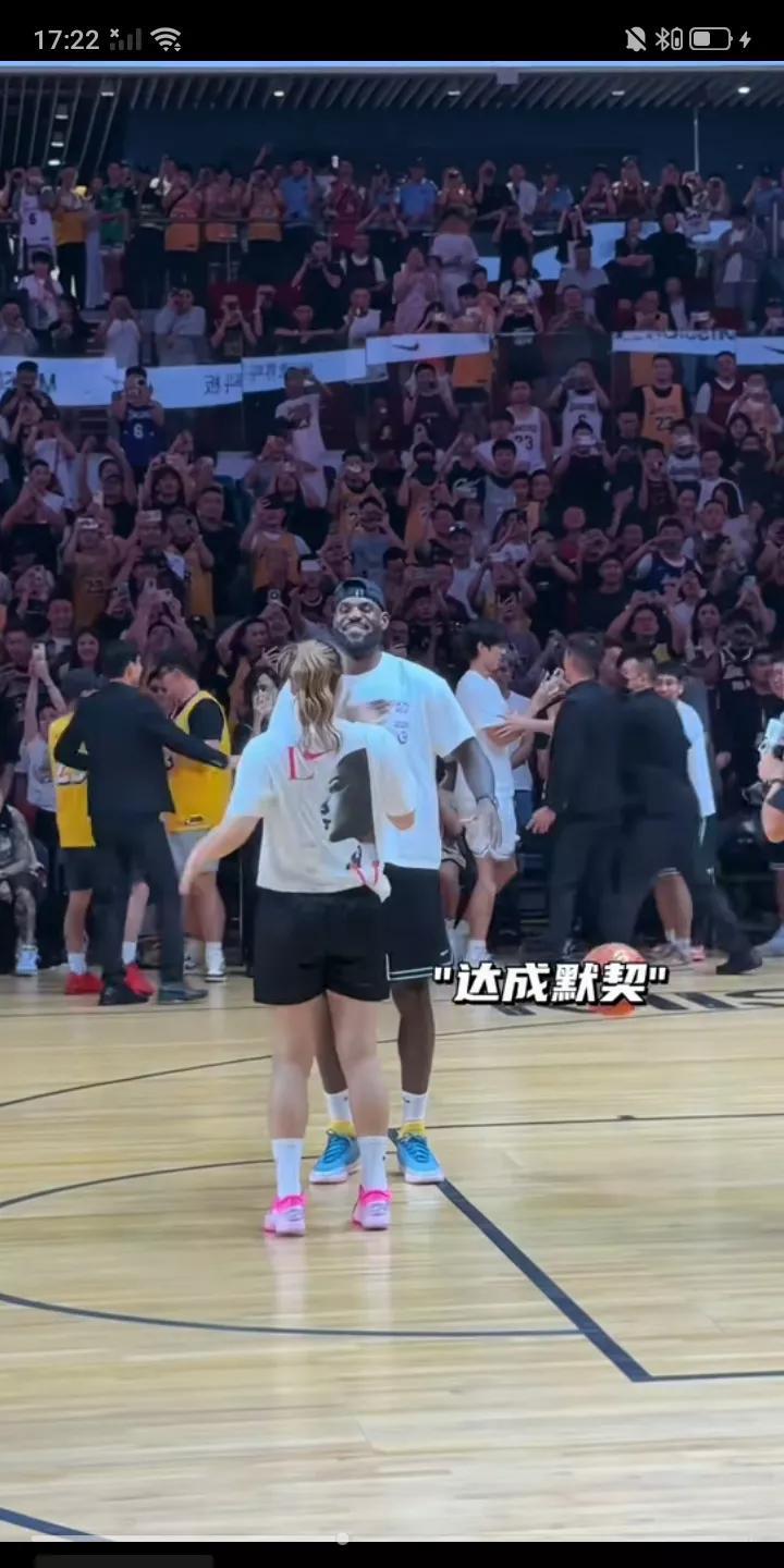 NBA巨星勒布朗詹姆斯中国行已经结束,在离开前詹姆斯与中国女篮球星勒布朗梦[李梦]热情拥抱,李梦送给偶像詹姆斯目前中国最火的熊猫玩偶,詹姆斯则拿出自己的战靴和签名球衣作为回赠。足以看出他们之间的惺惺相惜啊!这次能在国内见到偶像,对于李梦来说应该是无比开心的事啊!