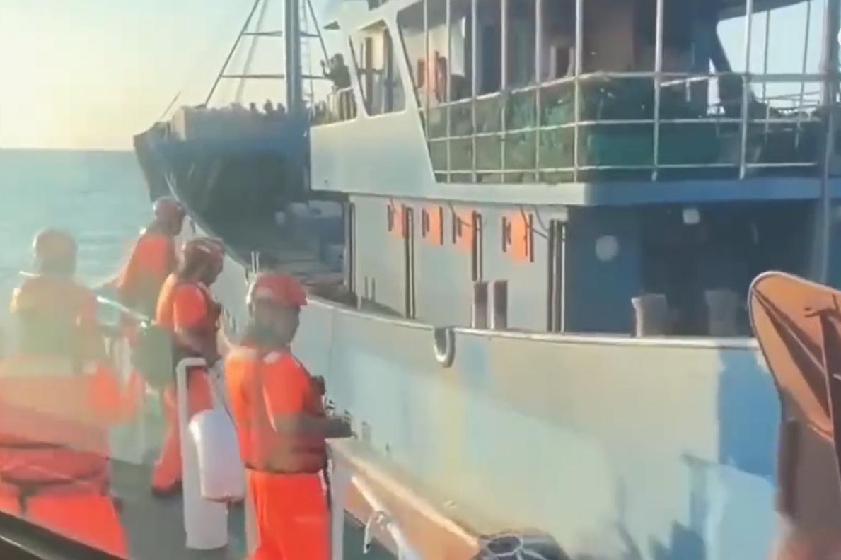 可不可以开海警船过去接他们回来