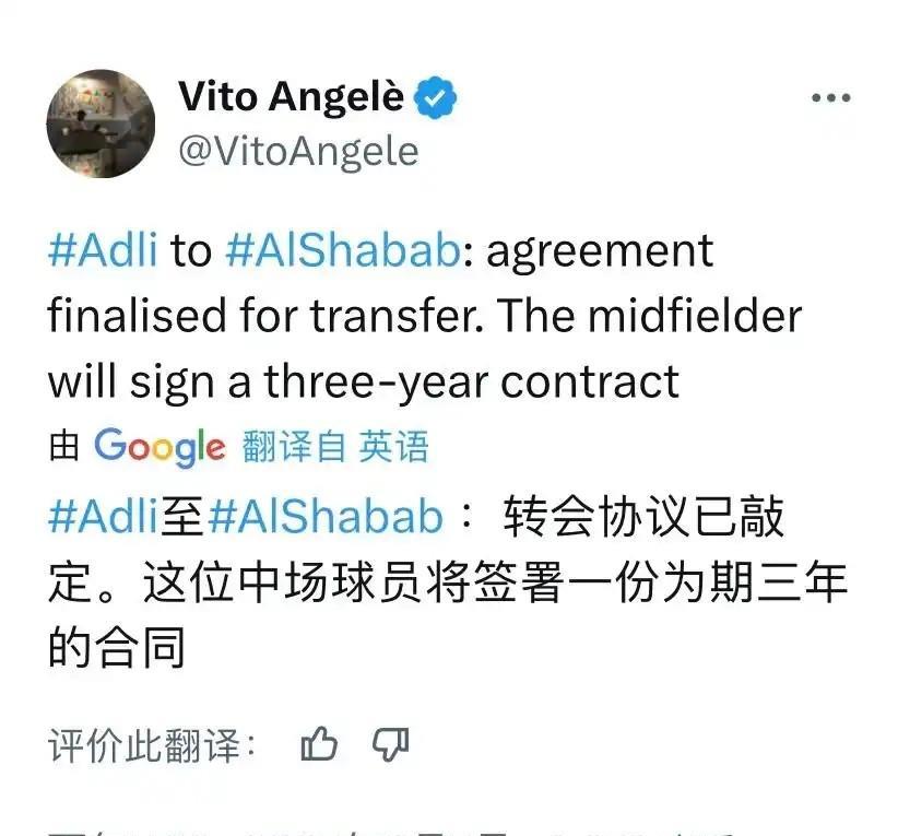 交易完成!恭喜阿德利,利雅得青年人俱乐部为阿德利开出的薪水超过600万欧元,算上