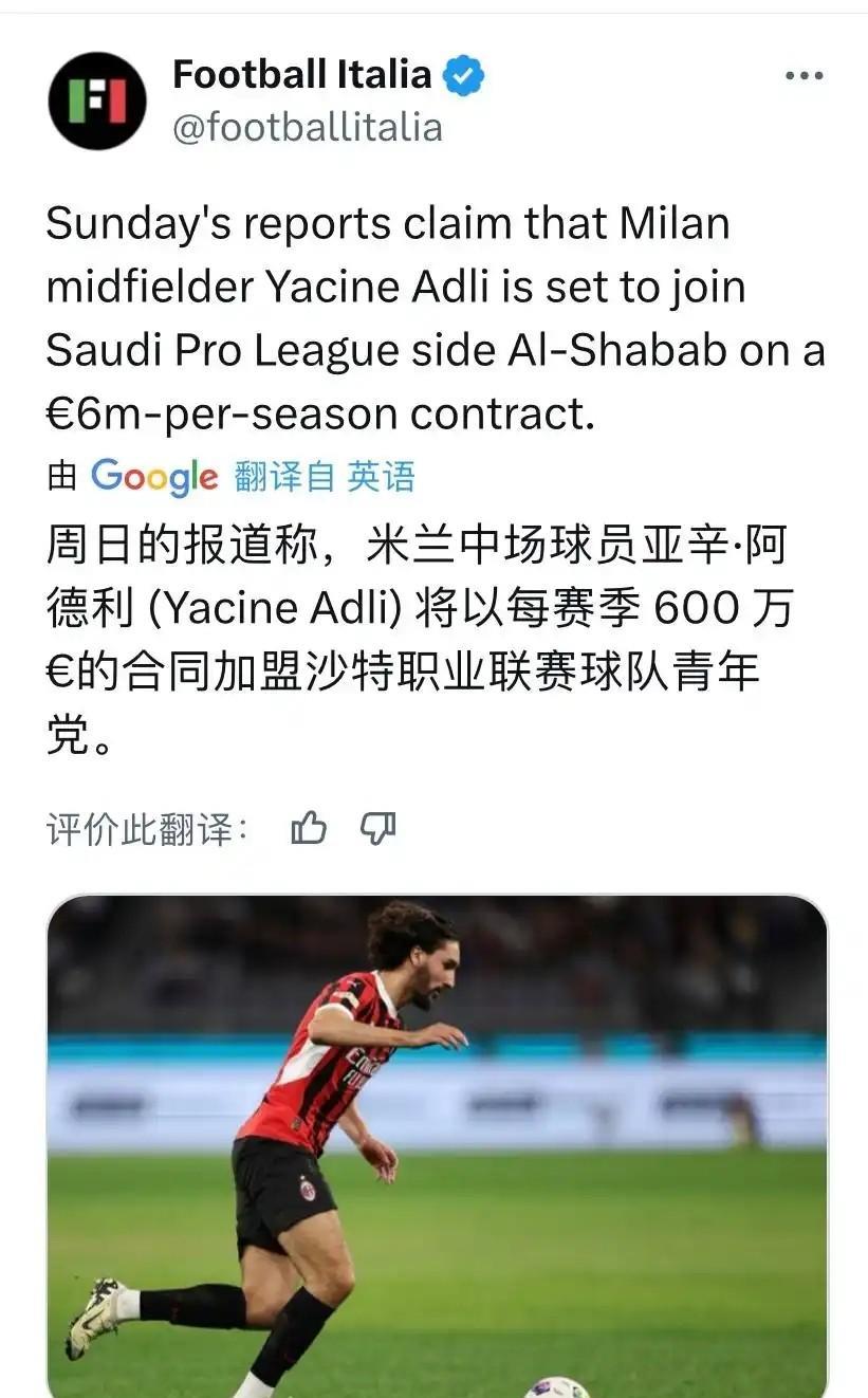 交易完成!恭喜阿德利,利雅得青年人俱乐部为阿德利开出的薪水超过600万欧元,算上奖金最高可以达到700万欧元。希望阿德利安定后能给本纳赛尔好好讲讲,不要和米兰互相伤害了,去沙特赚几倍的薪水有啥不好?去啥破马赛俱乐部,那地方有啥好的? 阿德利加盟利雅得青年人俱乐部交易已经完成,球员将在24小时内前往沙特。据说沙特很快会跟中超外援盛世末期一样,出个规定开始控制薪水上限了,所以现在抓住尾巴加盟沙特俱乐部绝对是正确的选择,想回欧洲是分分钟的事情,在沙特俱乐部赚几年钱再回欧洲有啥问题。 阿德利对于沙特俱乐部的态度转变首先是米兰的态度,阿德利明白米兰不会再给机会,其次塔雷可以说功不可没,塔雷与阿德利之前有过一次重要的交谈,我看到这个消息时候,第一想法就是也许迈尼昂续约还有希望,毕竟阿德利都能说服。米兰这80万欧元请来的塔雷是真的值啊,啥活都干的漂漂亮亮的。