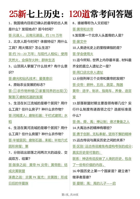 25新七上历史真恶心,反复就考这120个问题