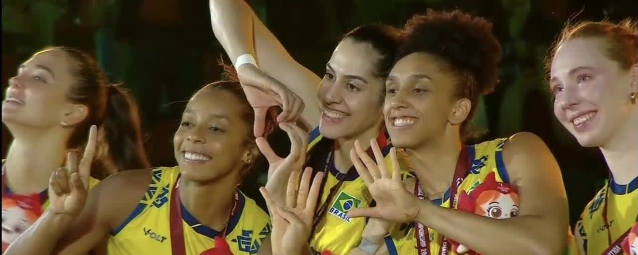 巴西女排站在领奖台上哭成了泪人[流泪][流泪]70多岁的吉马良斯带着这支巴西女排