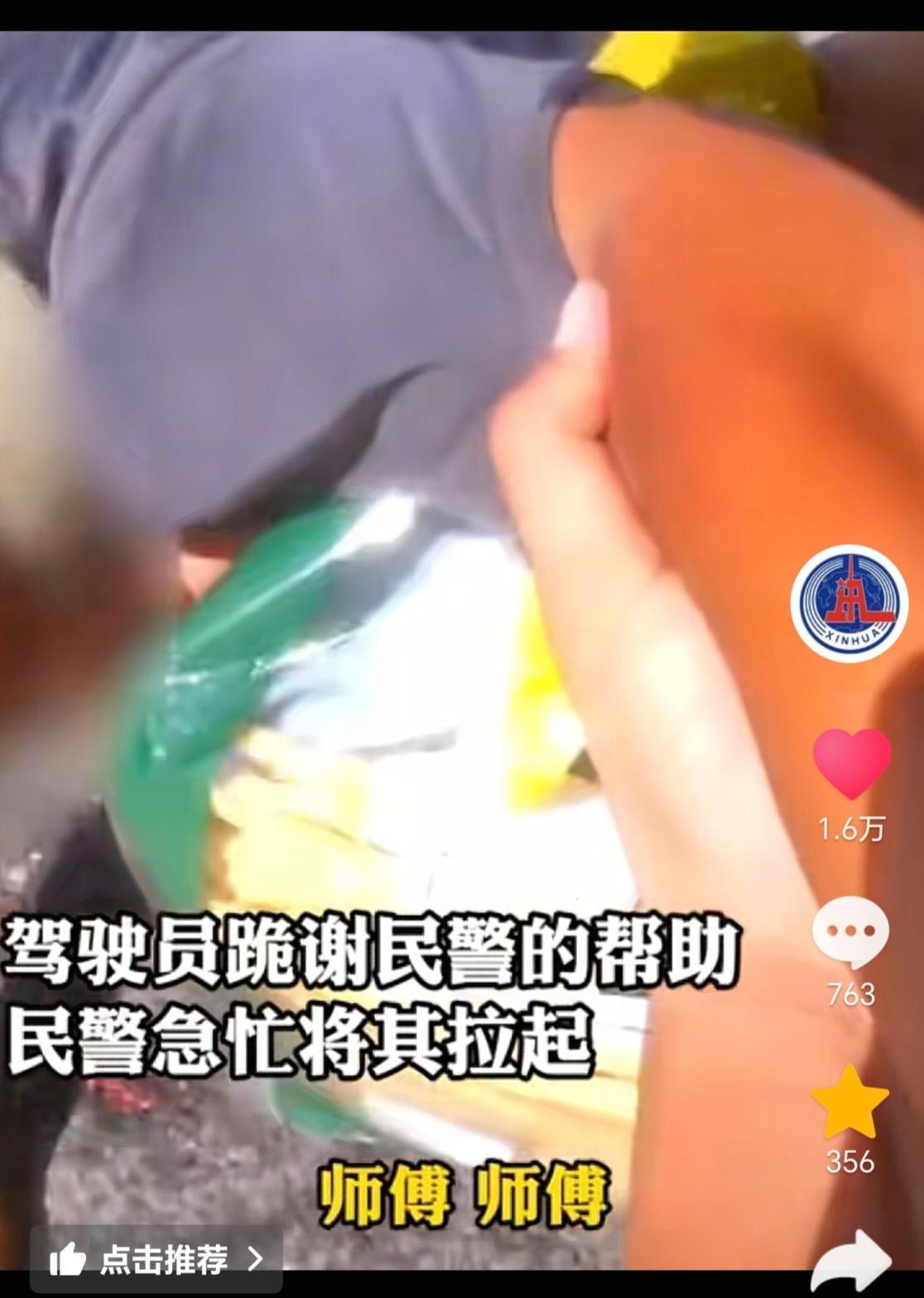 陕西榆林,一货车司机不慎发生事故,看着整车货物洒落一地,他顿时情绪失控,嚎啕大哭起来。这时,交警过来,拍着他肩膀安慰:“出了这么大的事,人没事就好……”随后,交警跑去买了包子和小米粥,给司机吃。 陕西榆林某路段,一外地货车发生侧翻,拉了满满一车腐竹,呼啦啦全都洒落在地,现场一片狼藉。交警赶到现场,经勘察发现,这属于单方面肇事,所幸没有造成人员伤亡。 货车司机惊魂未定,他无助地瘫坐在地上,再看看满地狼藉的货物,突然情绪失控,嚎啕大哭起来。 这时,执勤交警过来安慰他,还递给他一块毛巾让他擦干眼泪。“你没吃早饭吧?”司机哽咽着说,自己长年跑货车,有时候一天都不吃饭。民警听了说:“我也没吃早饭,走,我请你吃饭!” 说着,交警来到早餐店,买了两个包子,一杯小米粥,递给司机:“你快吃了它,就当着我的面吃”,还细心地把吸管插好。等司机情绪稳定下来,交警又耐心开导:“你看,今天出了这么大的事,你人没事,不就是万幸的吗?” 等司机吃完,交警又问司机,腐竹多少钱,自己也买一包,说着从身上掏出几十块钱,塞给司机,货车司机连连摆手:“不,不能要你的钱。”他被感动地对着交警跪谢:“你们已经帮我这么多了,不能再要你们的钱了!”话没说完,又是泪流满面。 交警一把拉起司机:“师傅,你不要这样,出门在外,什么情况都可能会遇到,慢慢来,总会过去的,不着急哈……” 成年人的崩溃可能在一瞬间,货车司机肩负着一大家子的生计,整天奔波劳碌,吃住都在车上,非常辛苦,还要面对各种突发状况。 文中的这位货车司机,一个不留神导致翻车,所幸人安全,没有大事,可他也许想到拿那个货物损坏,没法跟货主交代,也许想到车子损坏需要维修费用,千头万绪瞬间就涌上心头,堂堂一个七尺男子,再也绷不住,嚎啕大哭,那一刻,他的心酸,无奈通通宣泄出来。 不幸中的万幸,他遇到了温暖又贴心的交警,不但好心安慰,开导他,还为他买饭,监督他吃下去。我想,这次经历,对司机大哥来说,这辈子难以忘怀了,不仅仅是这一刻的崩溃,更多的是素昧平生的交警,带给他的善意和温暖。 道路千万条,安全第一条,安全是距离家最近的路,愿所有的司机都行车安全,平安顺利! 素材来源:新华社