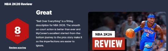 2K年货游戏《NBA 2K26》现已正式发售,媒体口碑出炉,IGN给本作打出8分成绩。 近年来,《NBA 2K》系列常常让玩家失望,然而《NBA 2K26》打破了这一趋势。MyCareer模式依旧是系列的核心与灵魂,今年凭借精彩的序章故事达到了数年来的最佳水准。 与此同时,一些细节调整——尤其是全新的投篮计量表和更自然的球员动作,把整体玩法更好地串联了起来,让各个模式的体验更轻松、更有回报感。