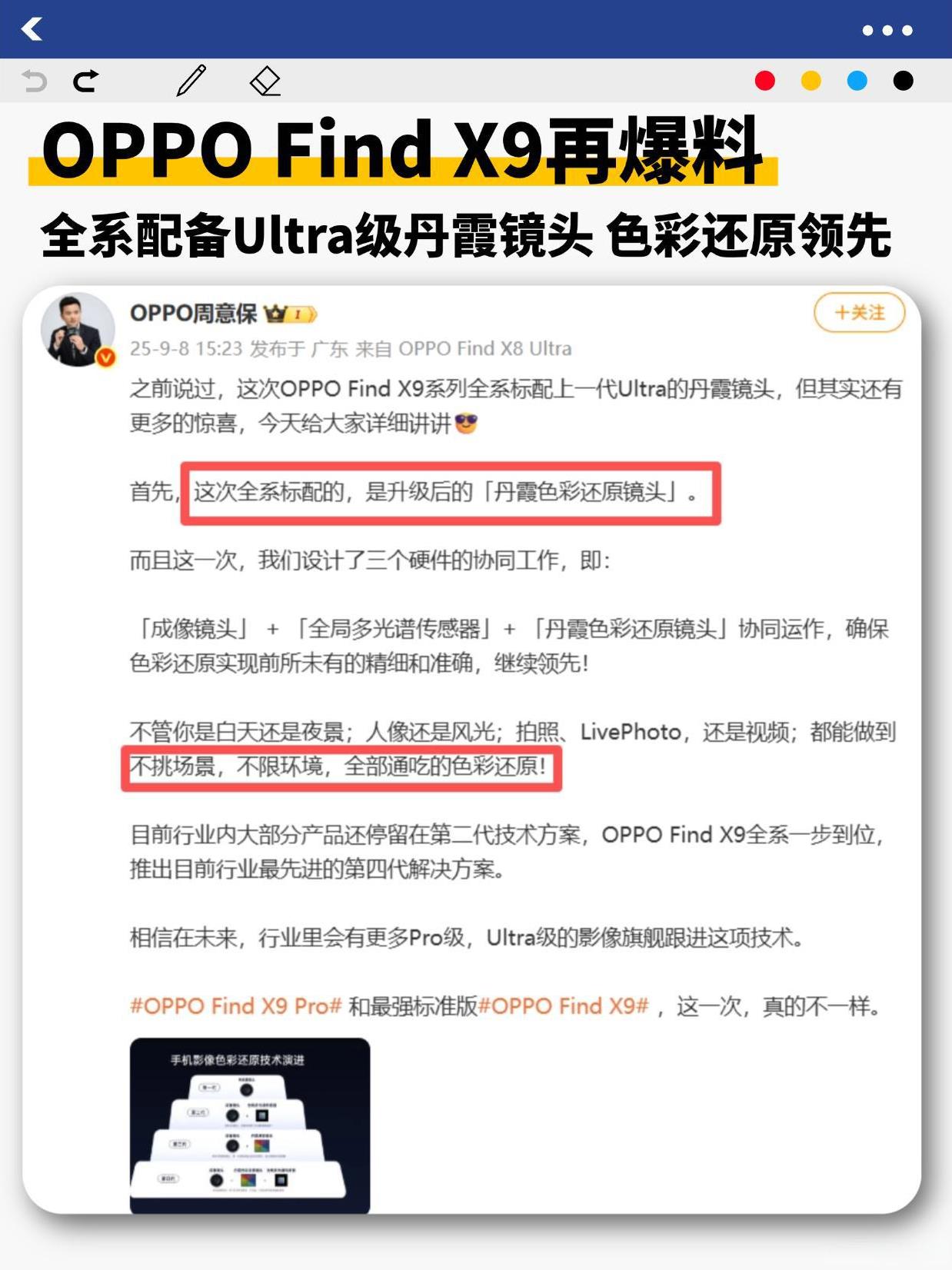 下半年唯一四摄旗舰?OPPO这回赢麻了。。。 保哥又爆料了,OPPO Find X9系列确定全系配备丹霞镜头,而且还是上代Find X8 Ultra同款的升级版,这真赢麻了吧?同期的旗舰新机里还有谁是四摄的? 按保哥的说法,这个是第四代的解决方案,省流就是:不管拍照片、live图、视频,拍人拍物都通吃,带来更精准的色彩还原 看了一下当初Find X8U跟其它影像旗舰的夜景人像对比,还真就是些几更丰富,模特的肤色看着也更自然一些,有气血感,这次升级完不是更强? 主要是X9标准版,之前爆料就说有大电池、超声波指纹这些升级,现在又有丹霞镜头,岂不是最强标准版?感觉可以期待一下啊,大家最看好哪款呢?