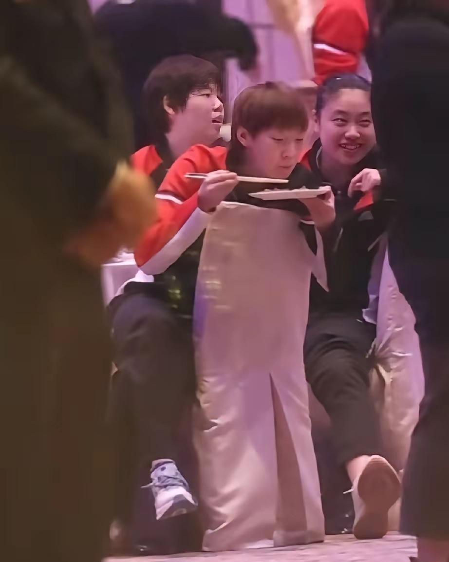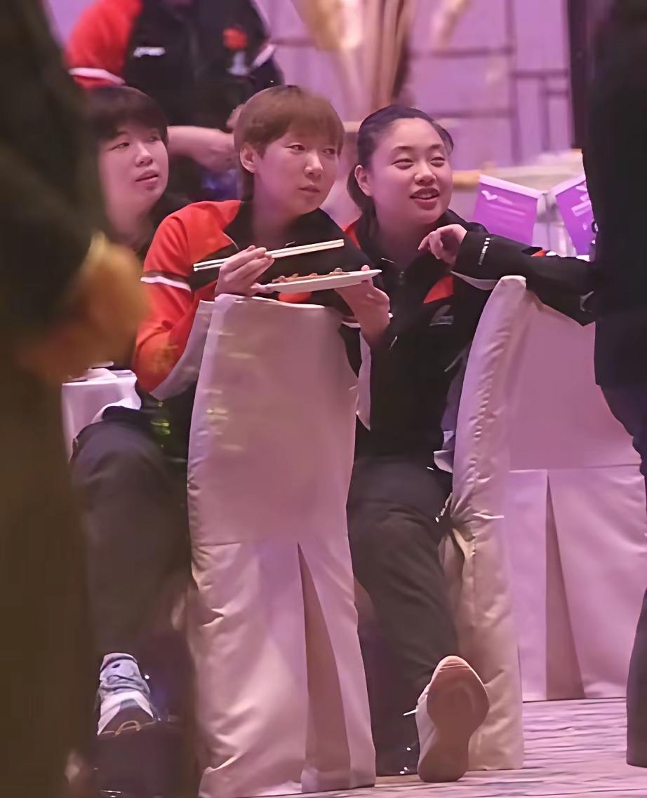 今晚澳门酒店里的WTT晚宴,王曼昱端着餐盘扭头那下,直接给球迷萌到了!就见她一边